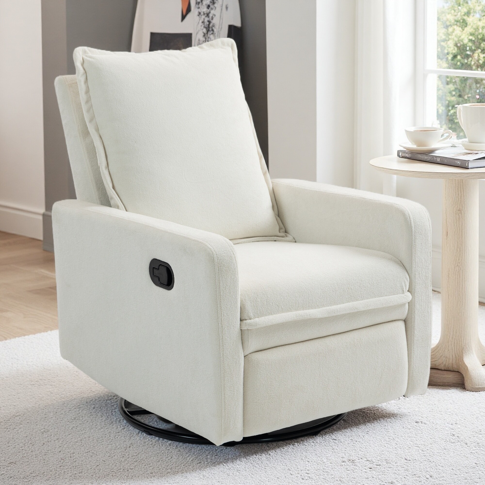 Linen Manual Swivel Base Recliner Chair with Footrest