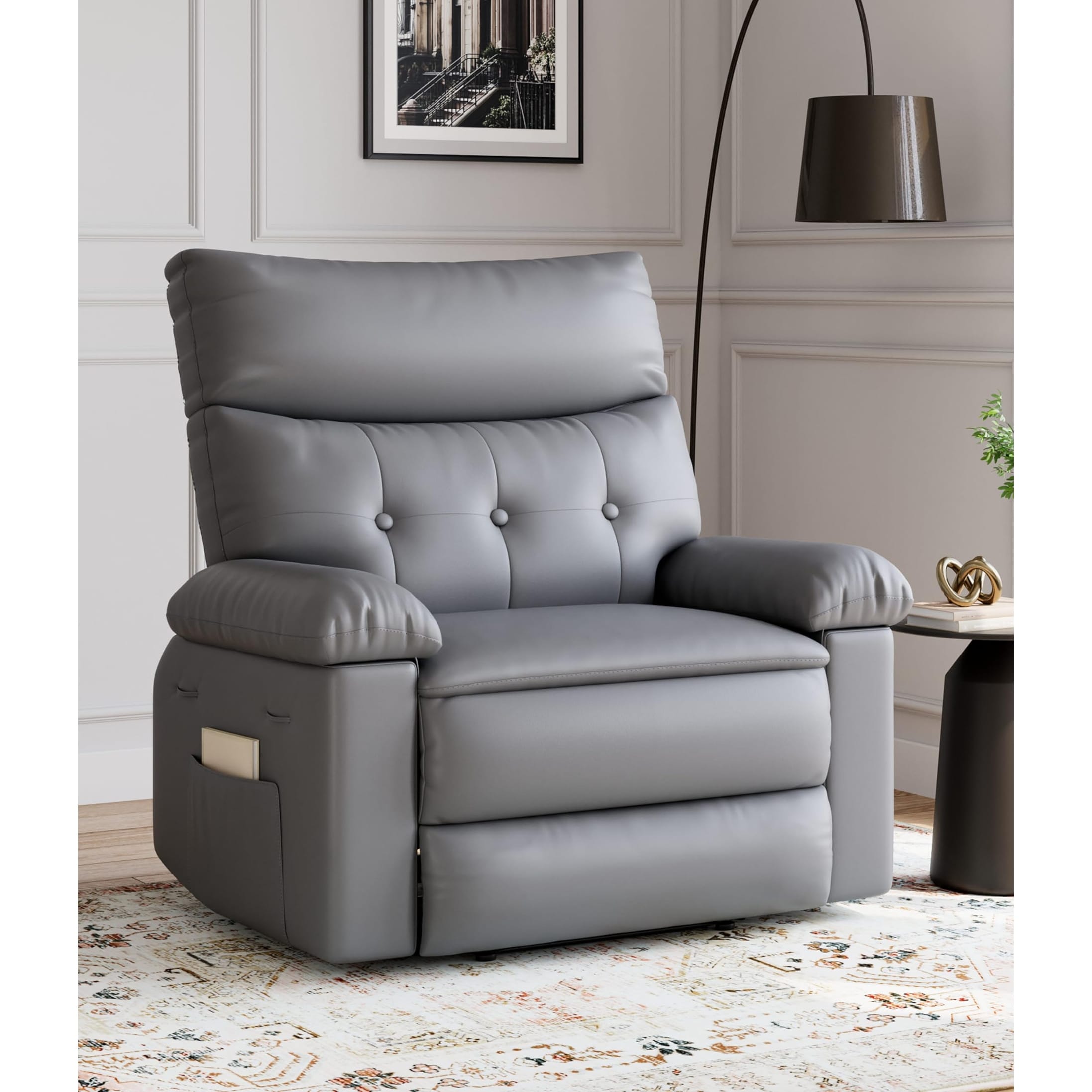 41.7" Wide Oversized Recliner Chair with Heat and Massage, PU Leather Manual Recliner with 1.5X Sponge Filling