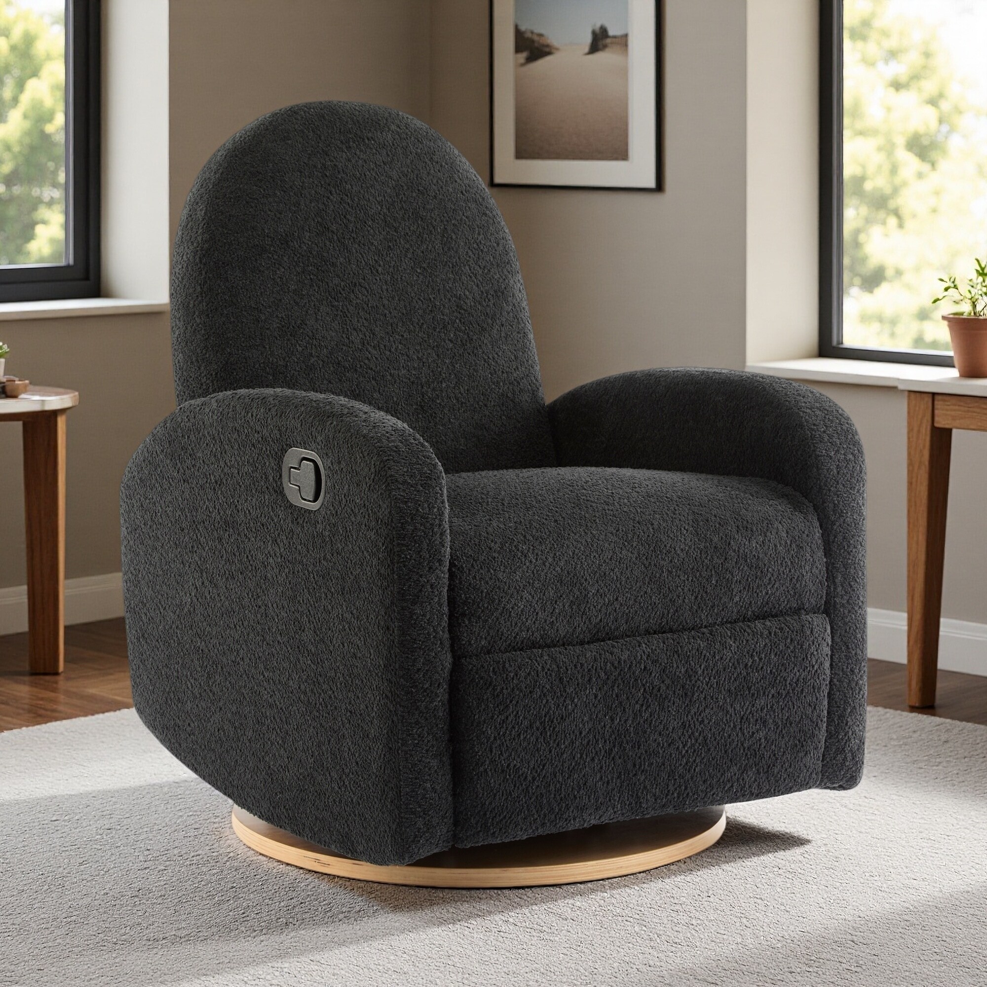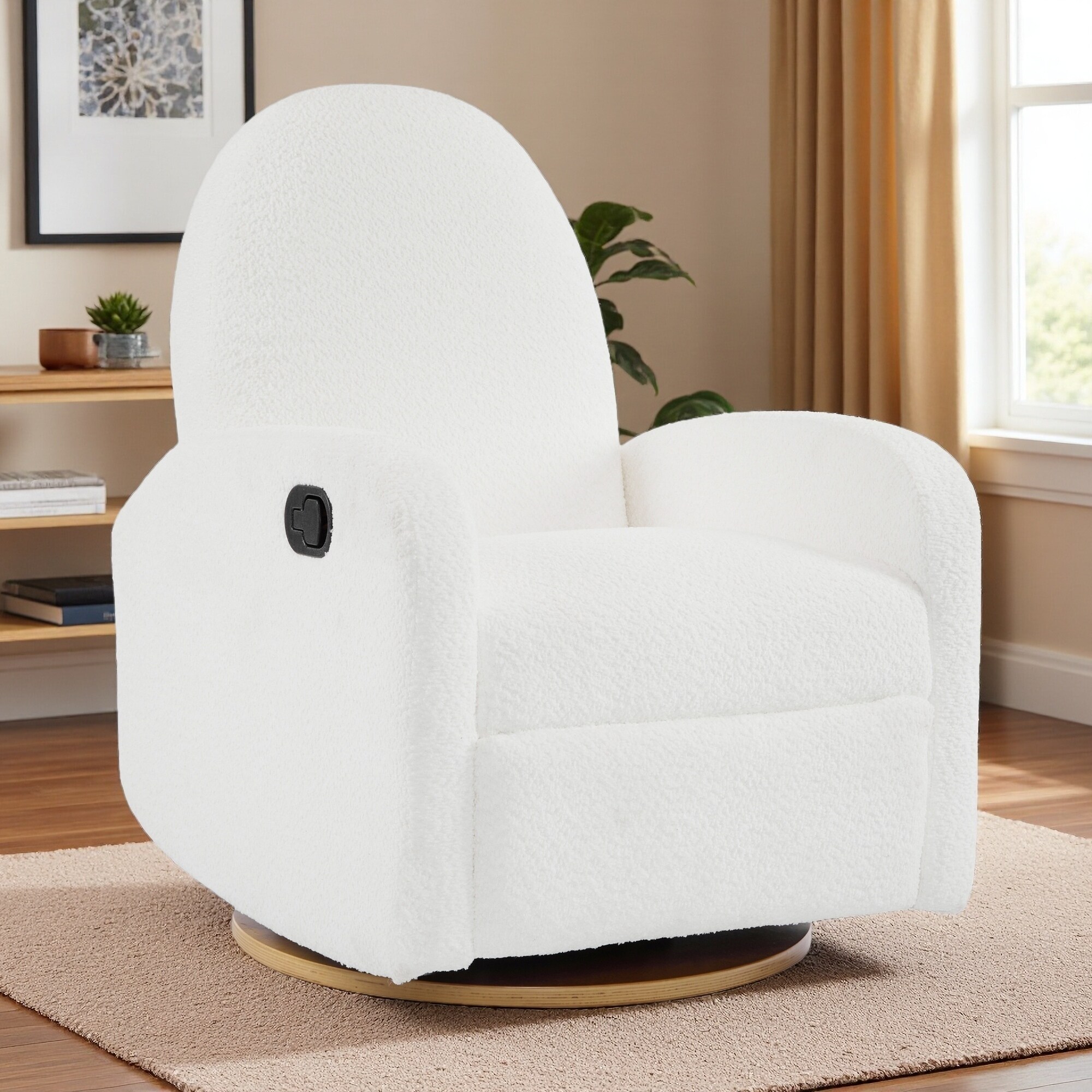 Boucle Fabric 360 Swivel Glider Recliner with Solid Wood Base