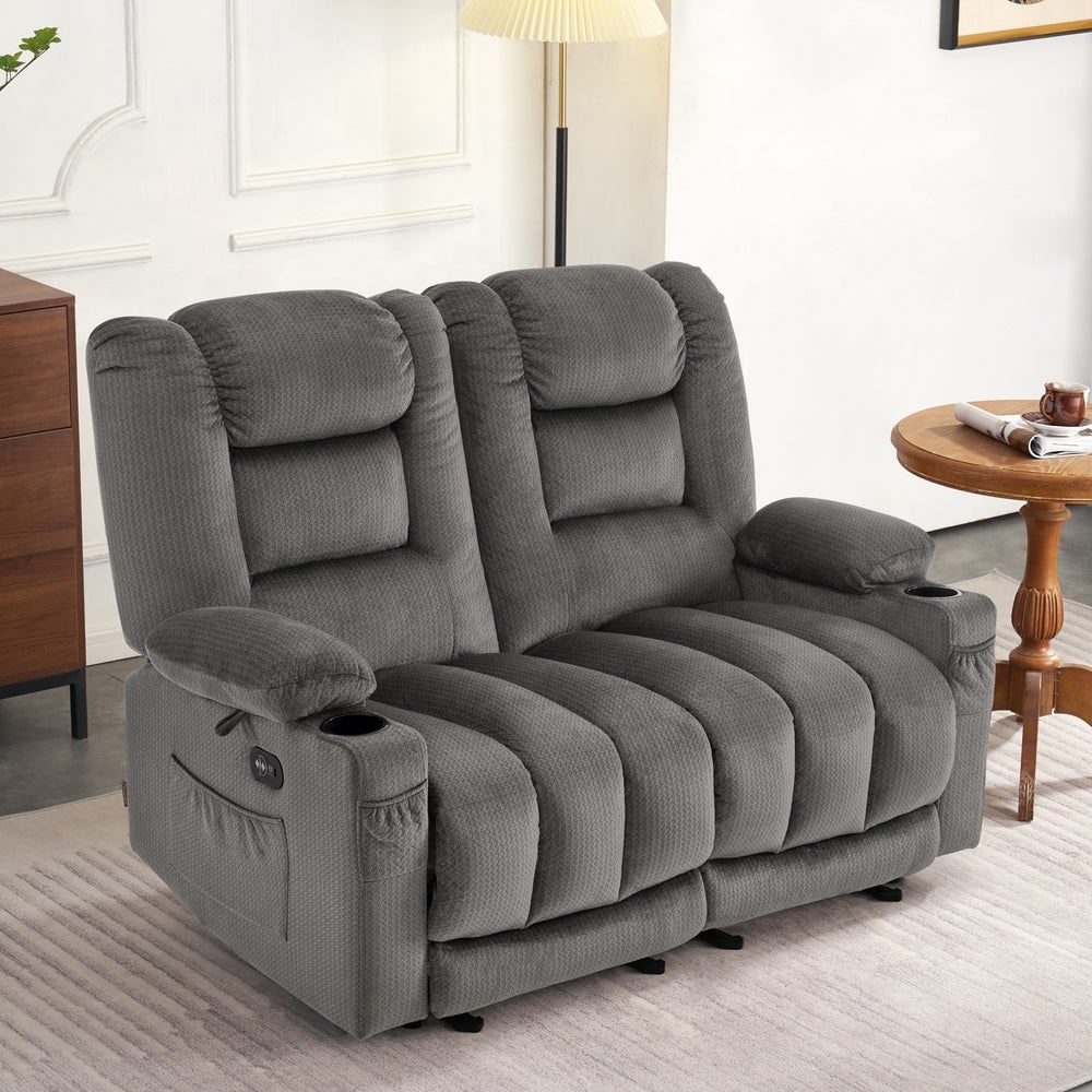 MCombo Power Reclining Loveseat Sofa with Heat and Massage, Fabric PR648