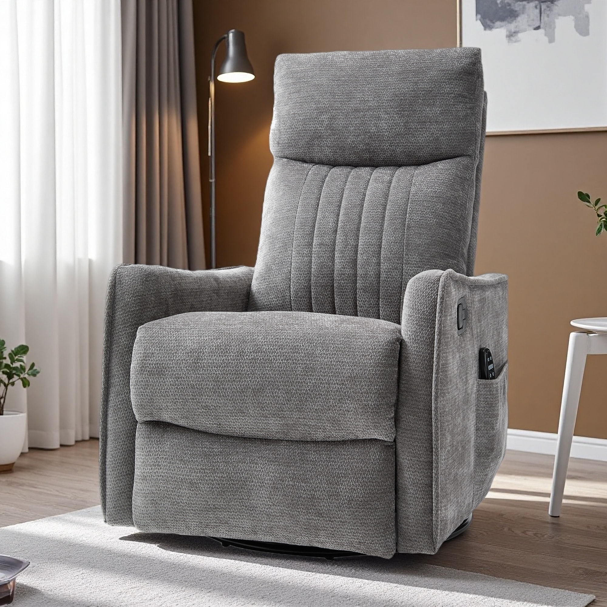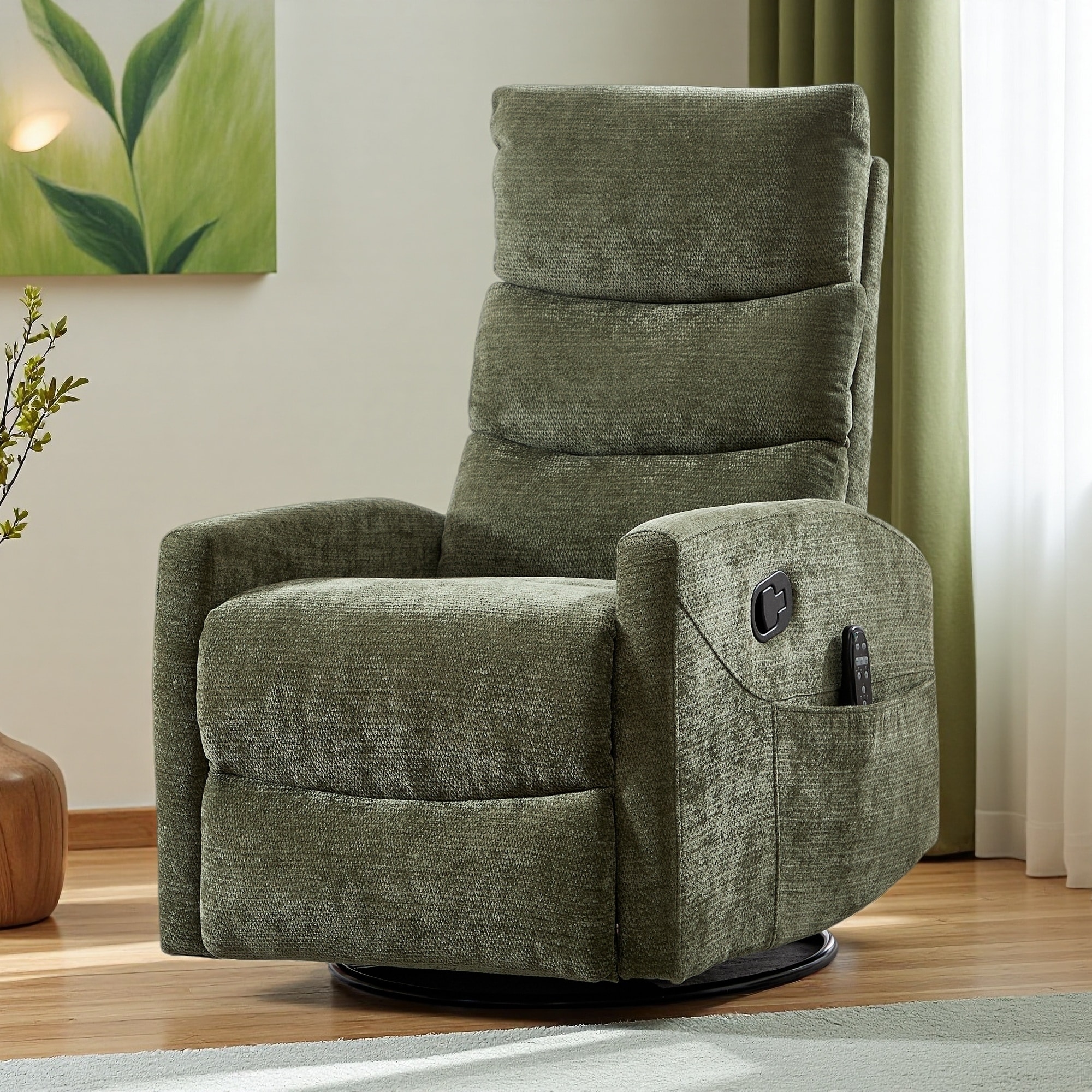 Chenille Manual Recliner Chair with 360° Swivel Rocker and 8-Point Heat Massage