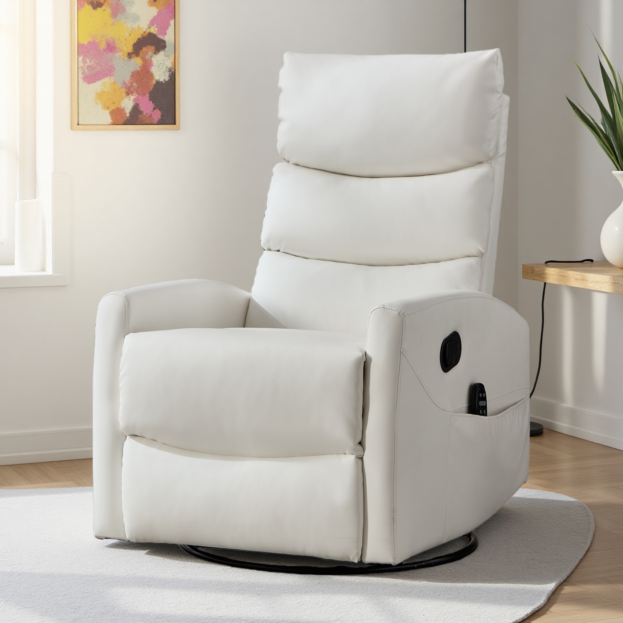 Leather Upholstered Reclining Chair Swivel Glider Motion Modern Living Room Furniture Comfort Chair