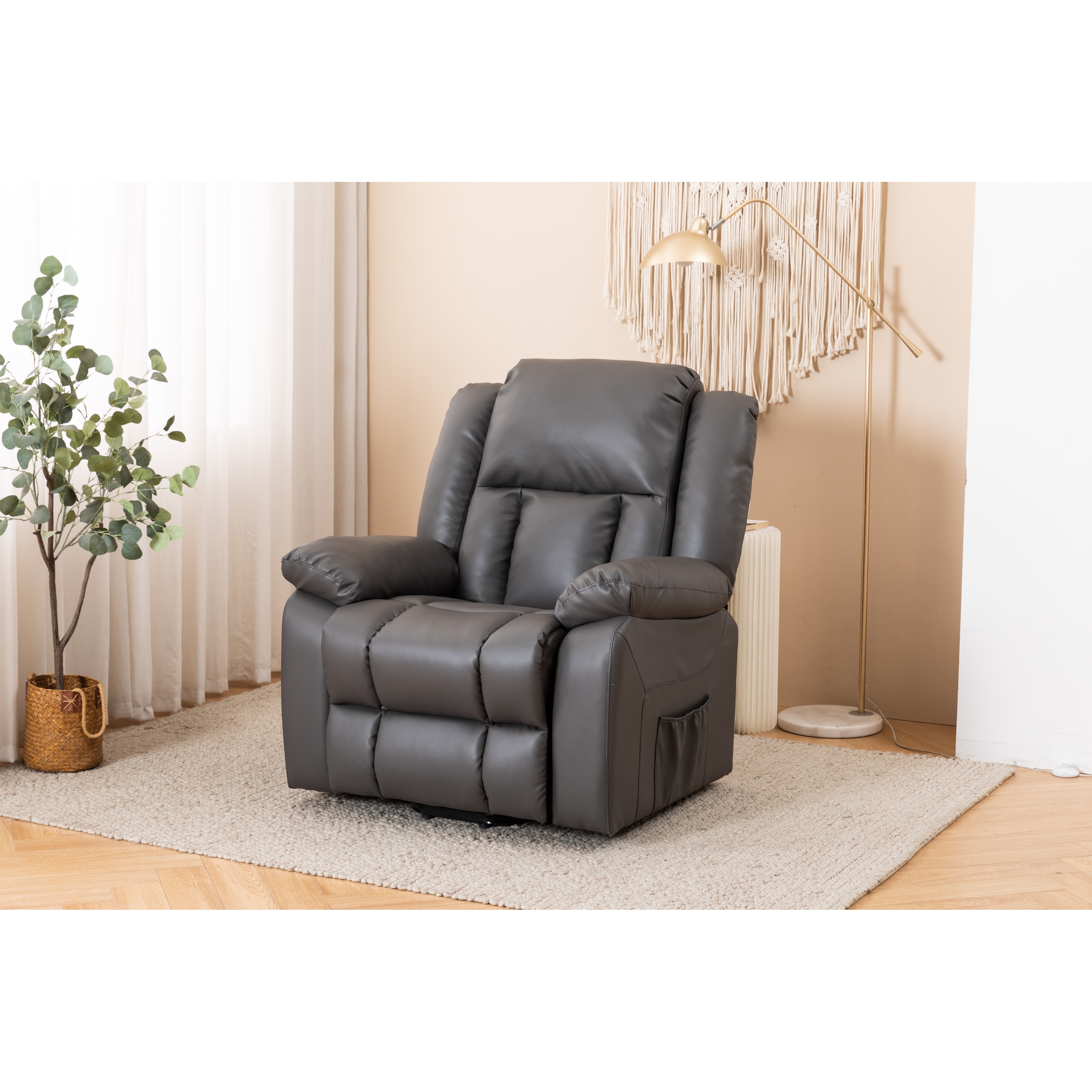Power Recliner Lift Assit Chair with Vibration Massage and Heat, Faux Leather, 350 lbs