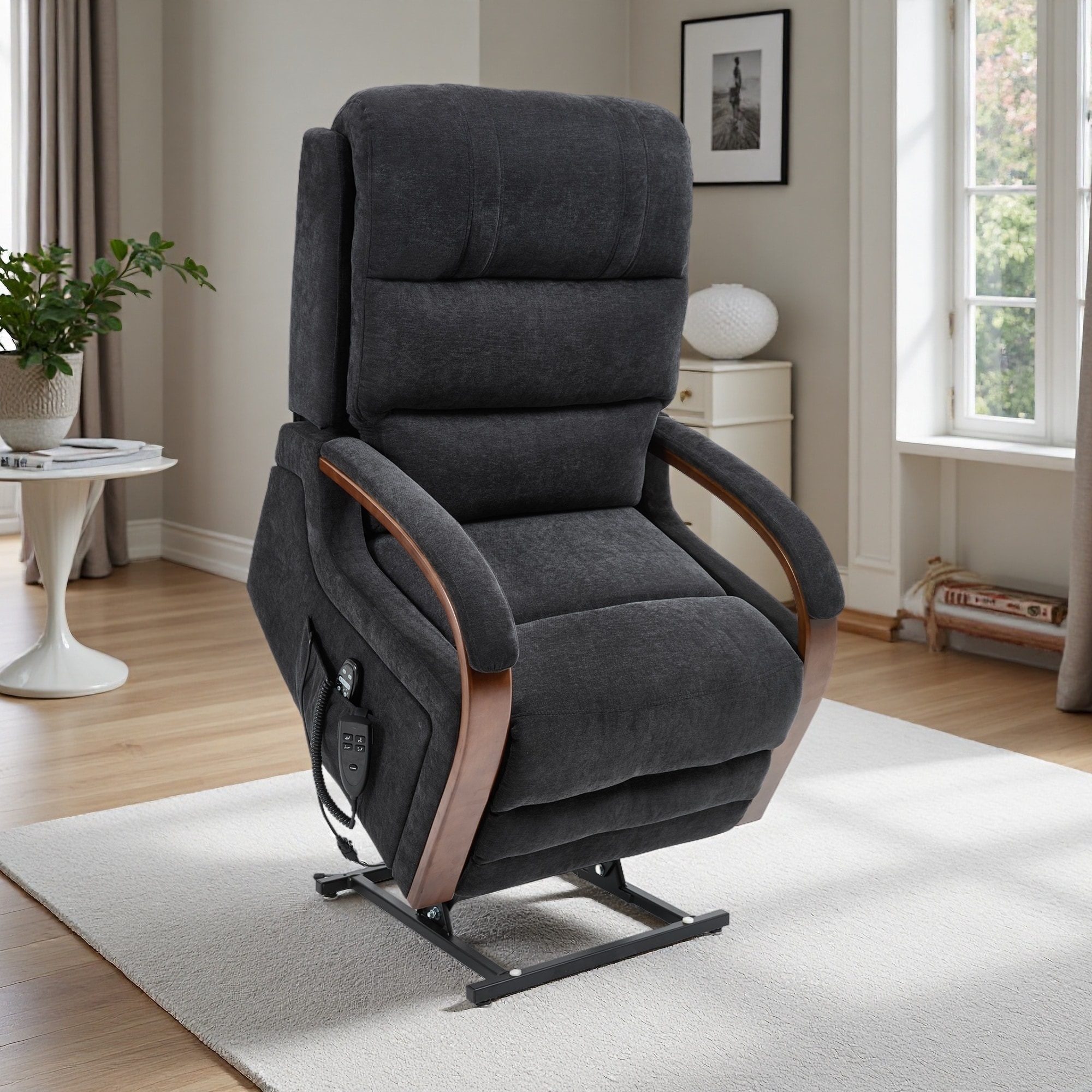 Dual Motor Infinite Position Lift Recliner Chair with Solid Wood Armrests, Heat Massage, and Heavy-Duty Motion Mechanism