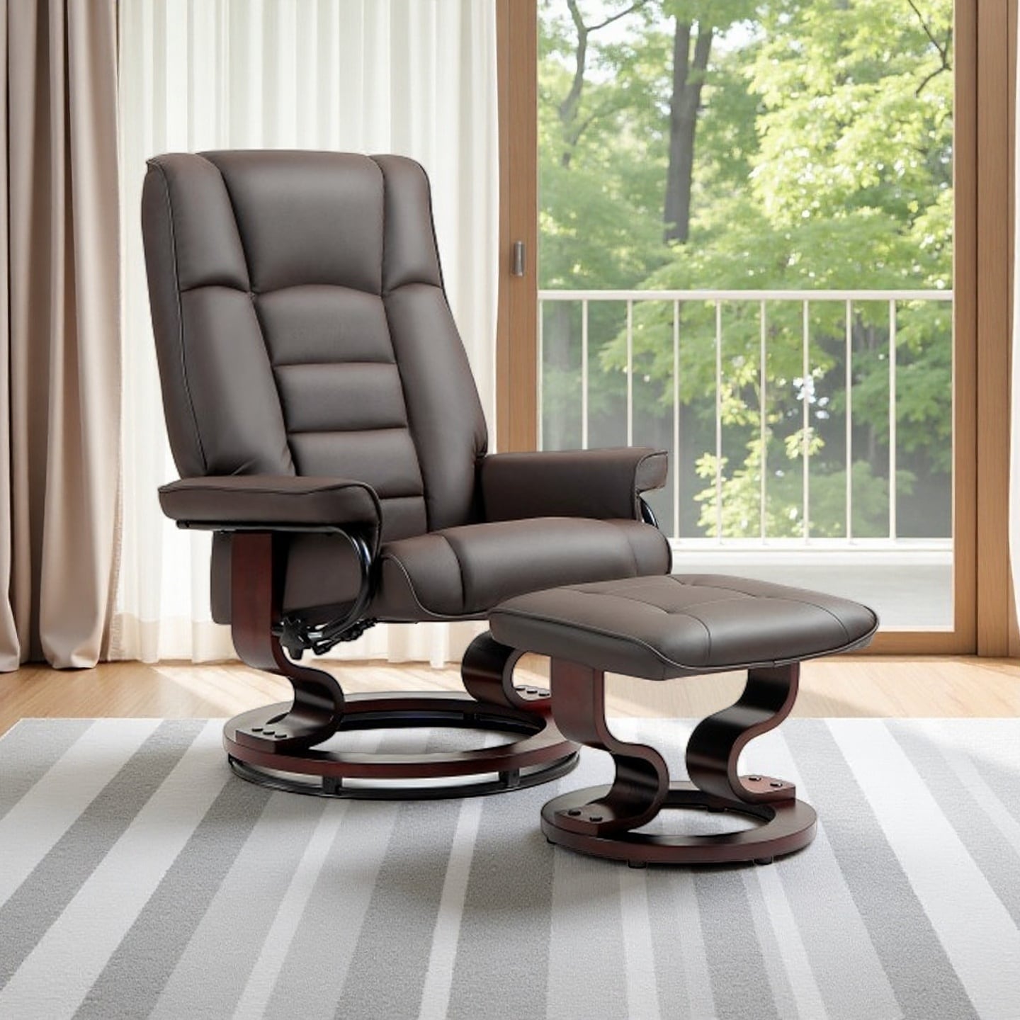 Faux Leather Swivel Recliner with Ottoman, Adjustable Manual Reclining Chair with High Back, Flared Armrests