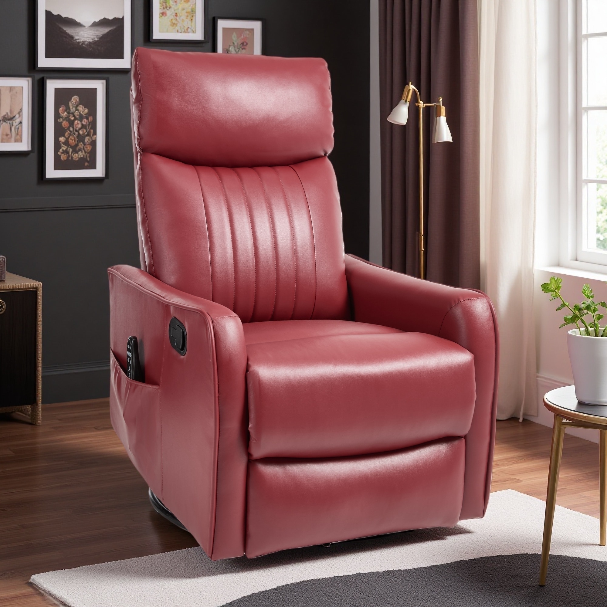 Faux Leather Manual Recliner with Swivel & Heat Massage