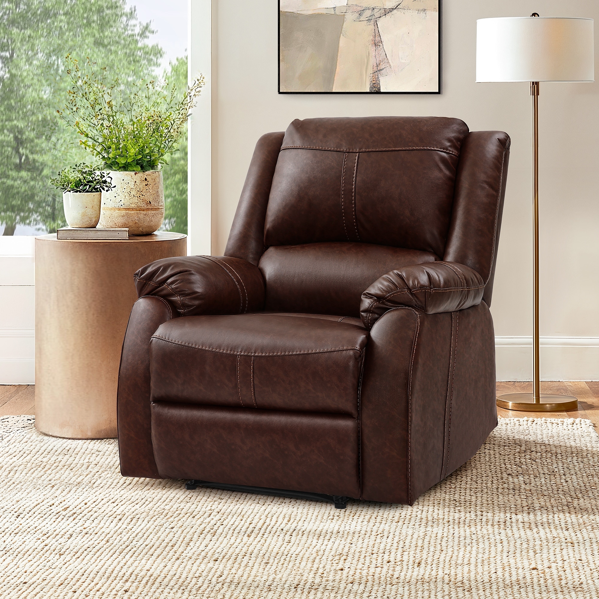 Faux Leather Recliner, Modern Manual Recliner Chair, Single Recliner For Living Room, Black / Saddle Brown / Brown Double Color