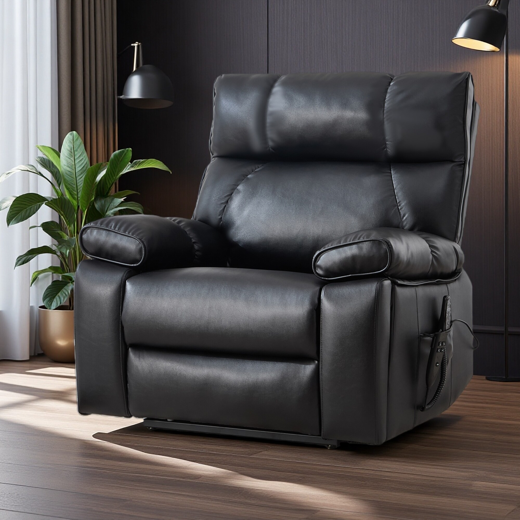 Leatheraire Heat Massage Dual Motor Infinite Position Up to 350 LBS Large Electric Power Lift Recliners, Power-Remote