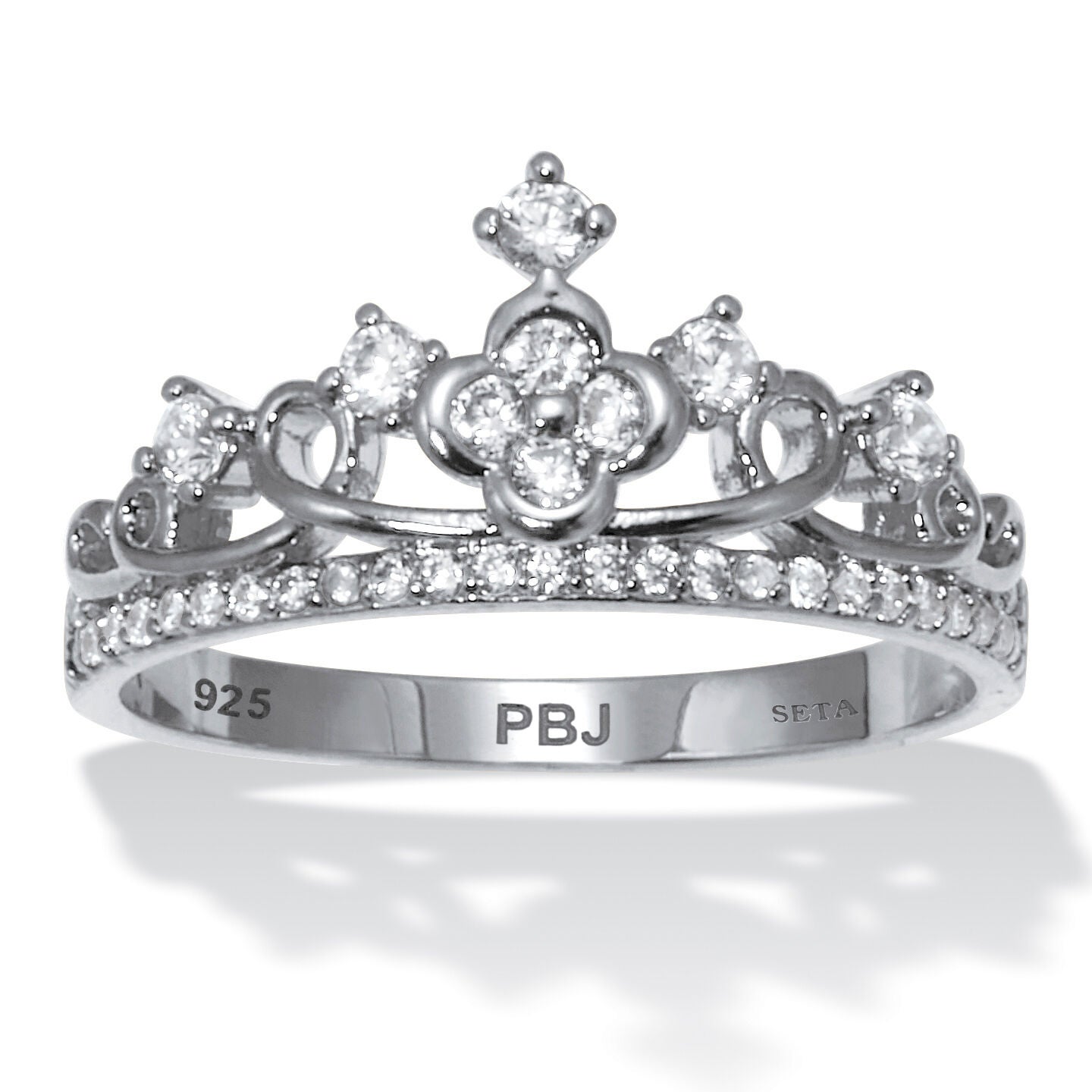 Women's .41 TCW Round Cubic Zirconia Sterling Silver Crown Ring by PalmBeach Jewelry in White (Size 10)