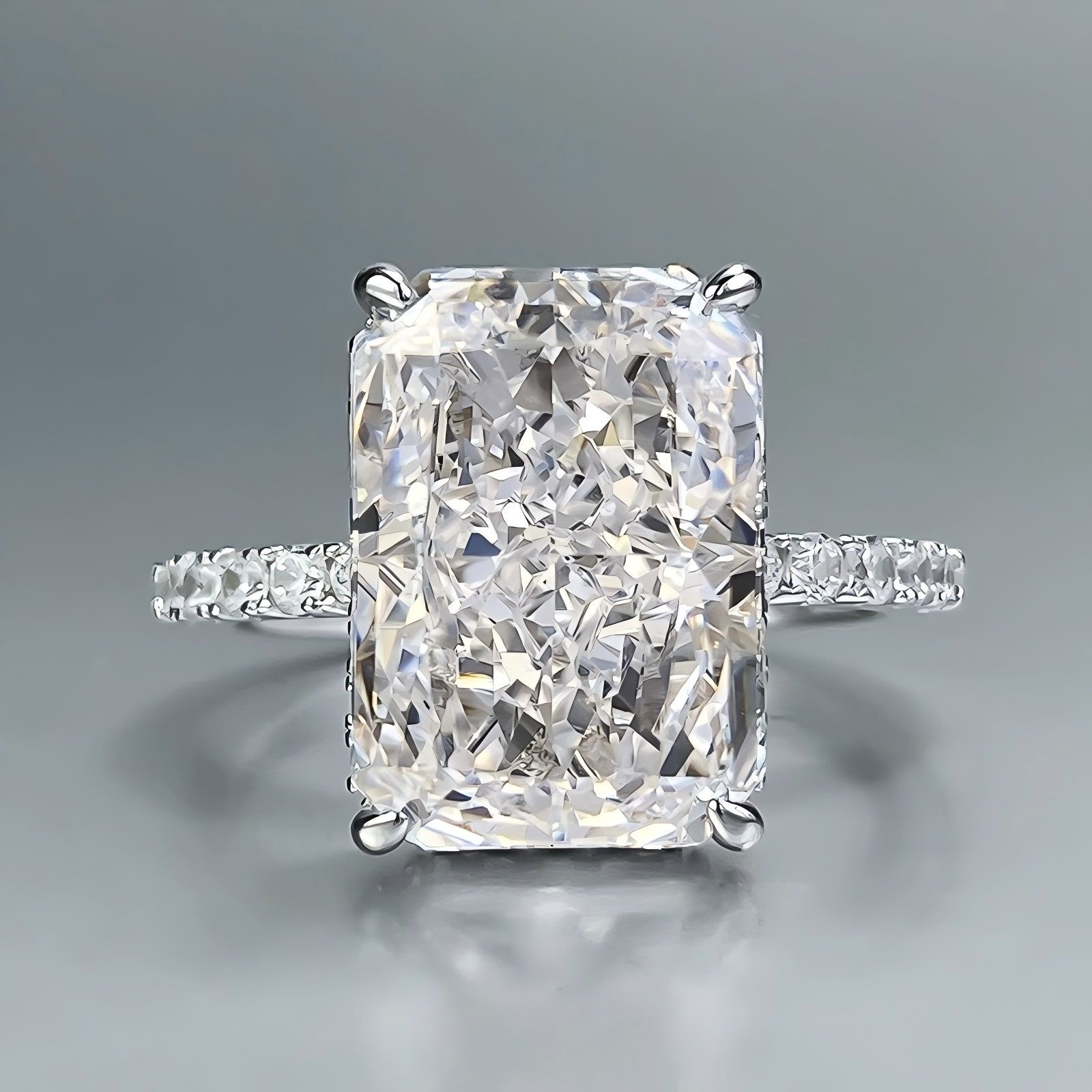 Luxury Fine Jewellery Radiant Cut Diamond Wedding Ring, Sterling Silver Wedding Ring, Elegant Bridal Jewellery silvermoissanite(5t) 9.25
