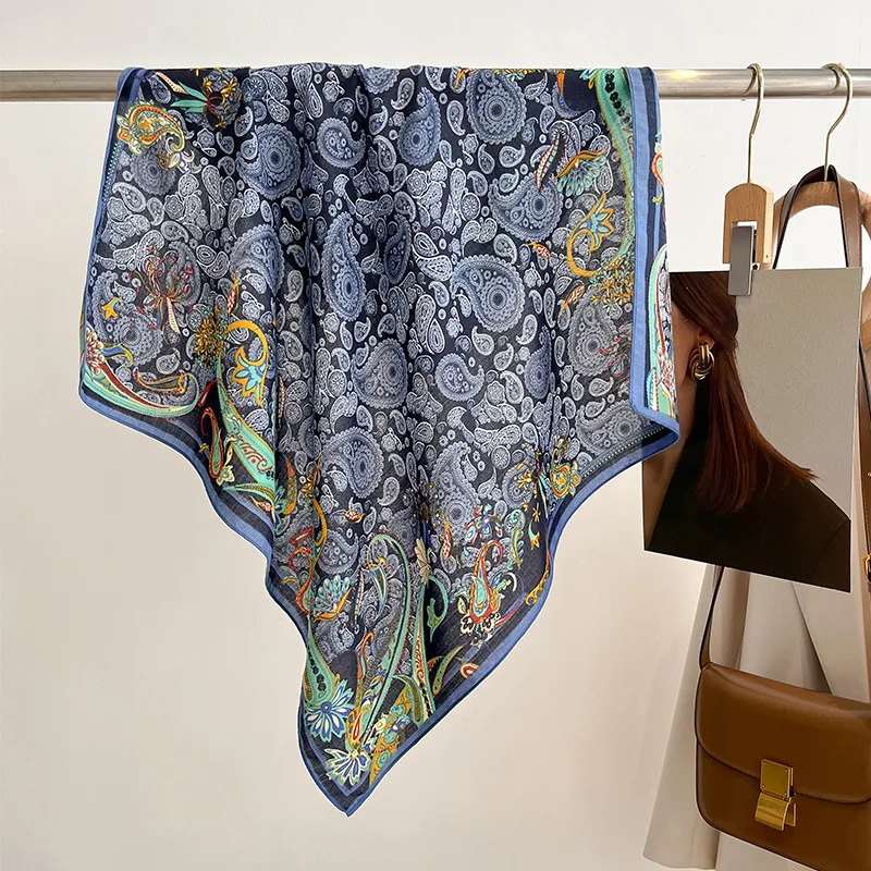 Luxury Womens Two Sided Print Scarf, Soft Warm Pashmina Shawl, Winter Coldproof Windproof Blanket Fashion blue