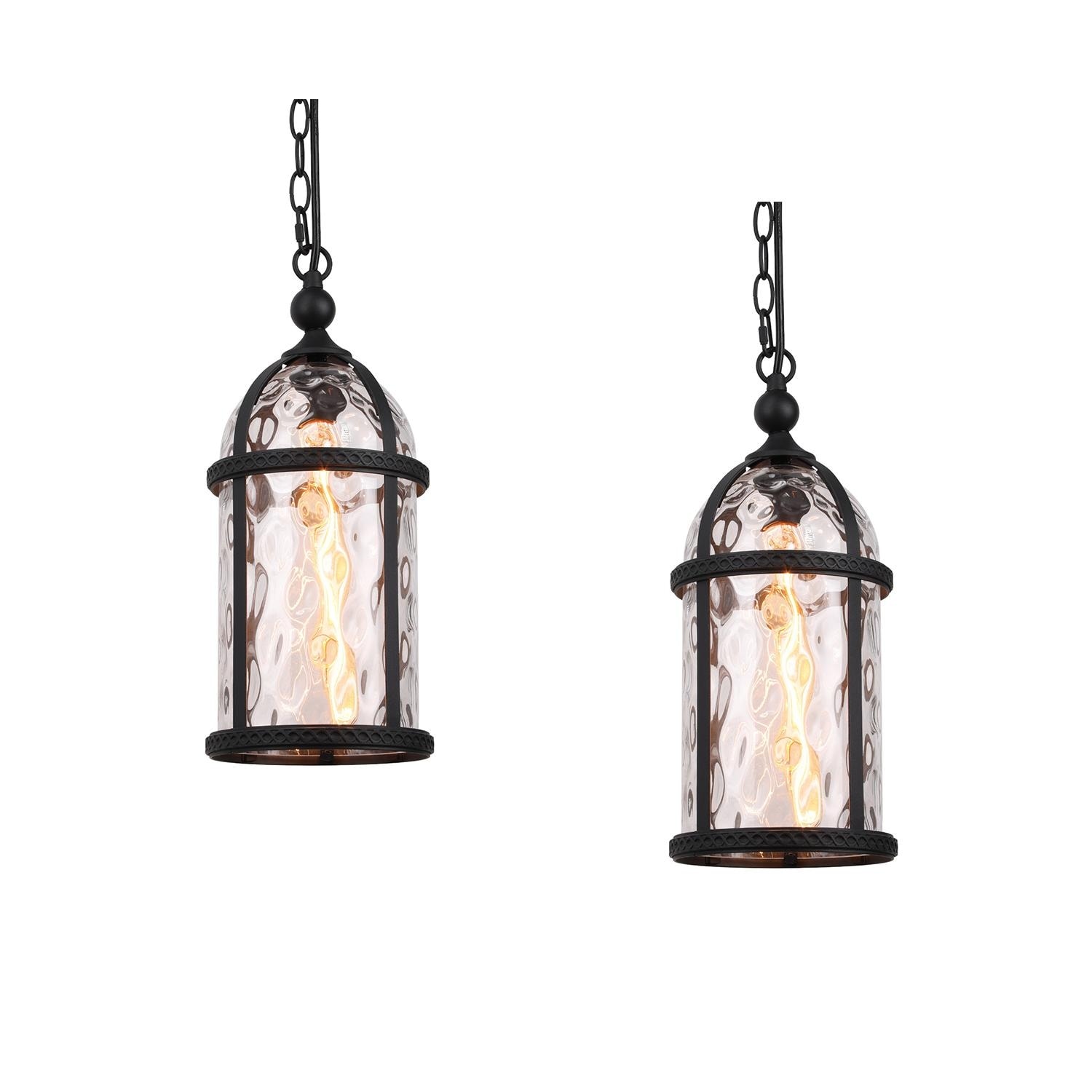 Outdoor Glass Pendant Light, 18 Inch Exterior Hanging Lantern, Black - 2 Pack