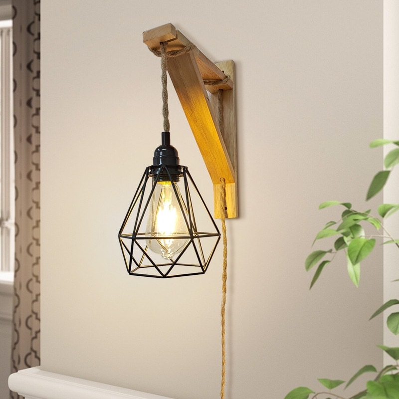 Rustic Plug-In Wall Sconce With Wood Shelf, Hanging Lamp With On/Off Switch, For Farmhouse Bedroom, Hallway, Living Room