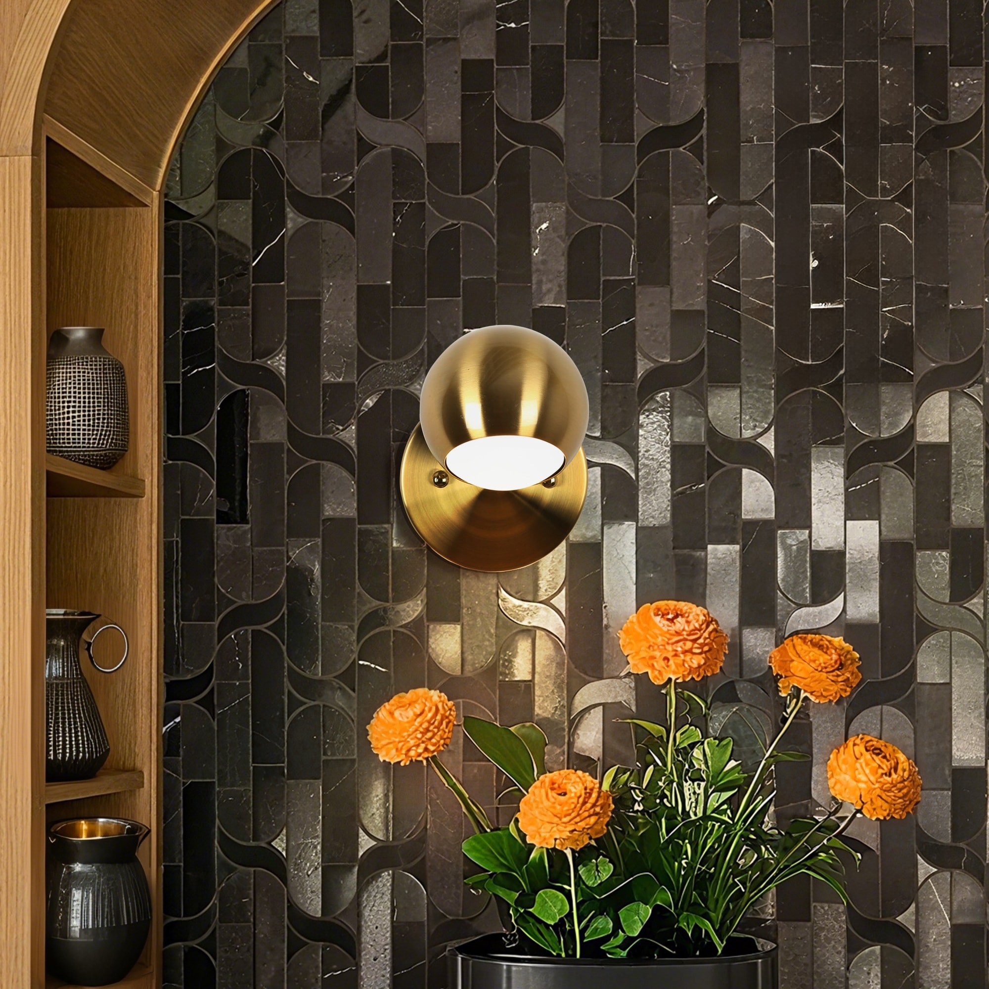 Modern 1-Light Gold Brass LED Wall Sconce Metal Bathroom Vanity Lights with Dome Shade - 4.7" L x 7" W x 8" H