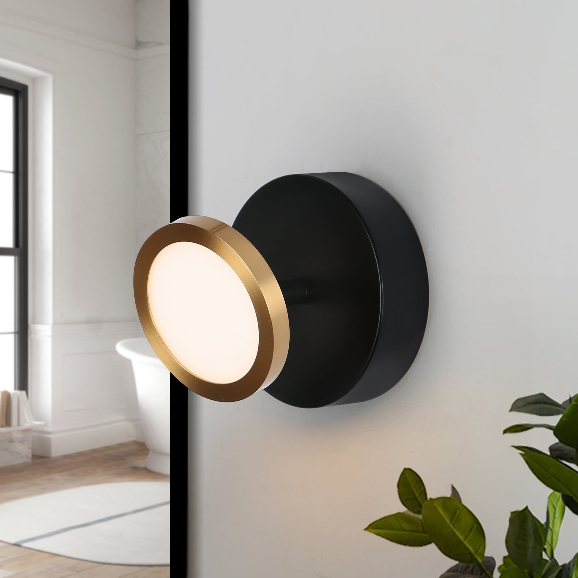 Modern Contemporary 1-Light LED Black Gold Wall Sconces Lighting Mini Bathroom Vanity Lights - 4.7" L x 4" W x 4.7" H