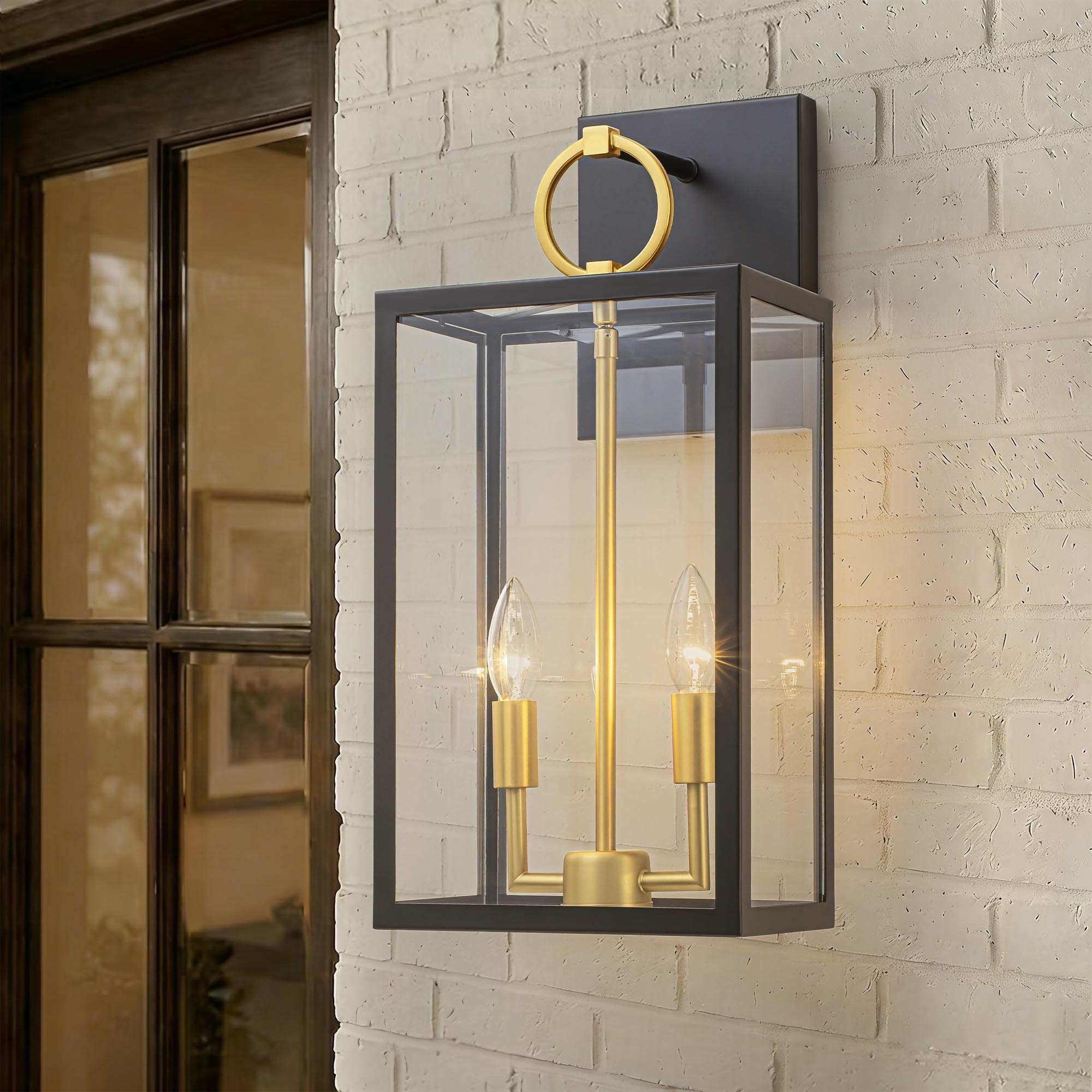 Rennnsan 2-Light Modern Transitional Black & Gold Glass Lantern Wall Sconce for Entryway & Hallway - 2 Light