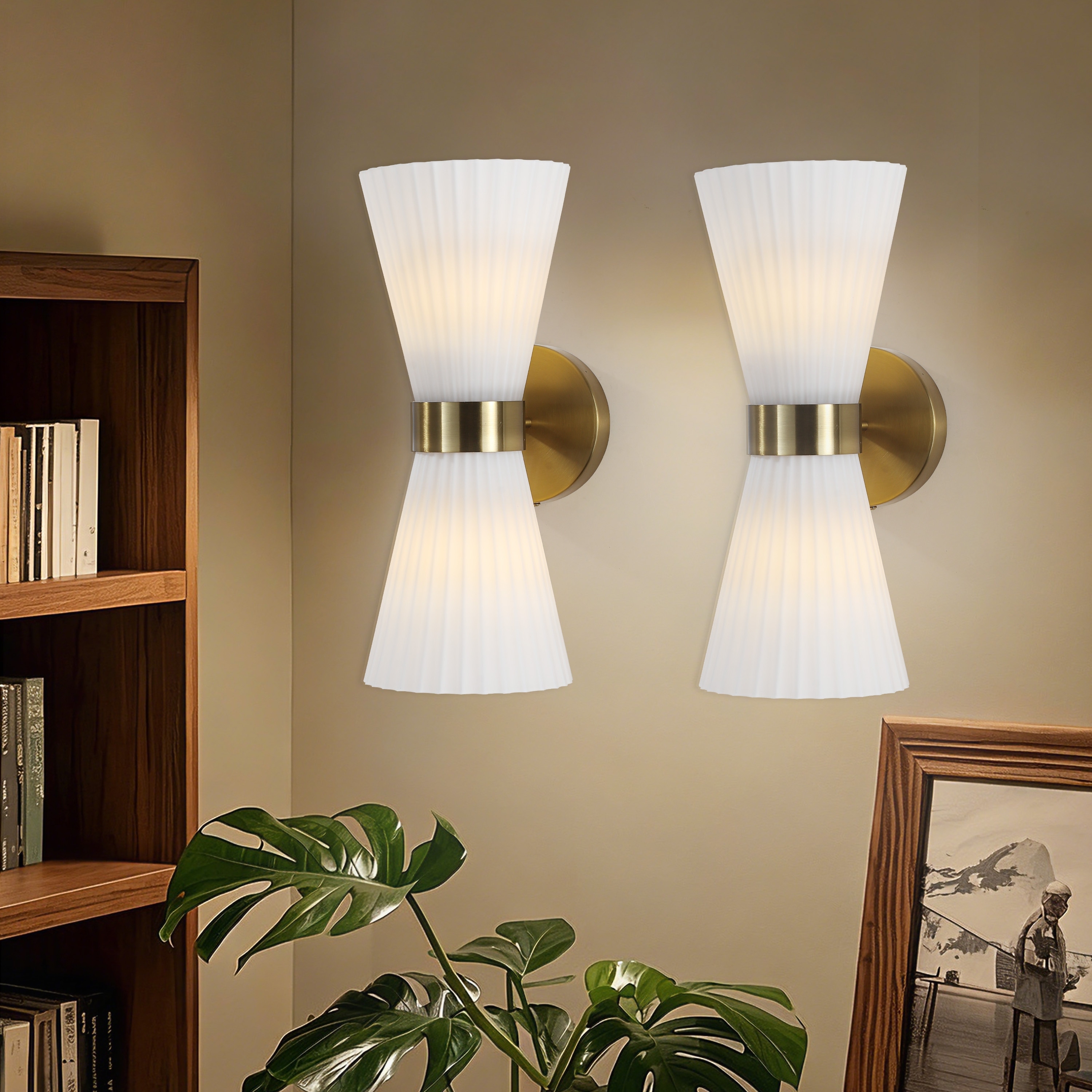 2-Light Modern Brushed Brass & Frosted Glass Wall Sconce (Set of 2) - N/A