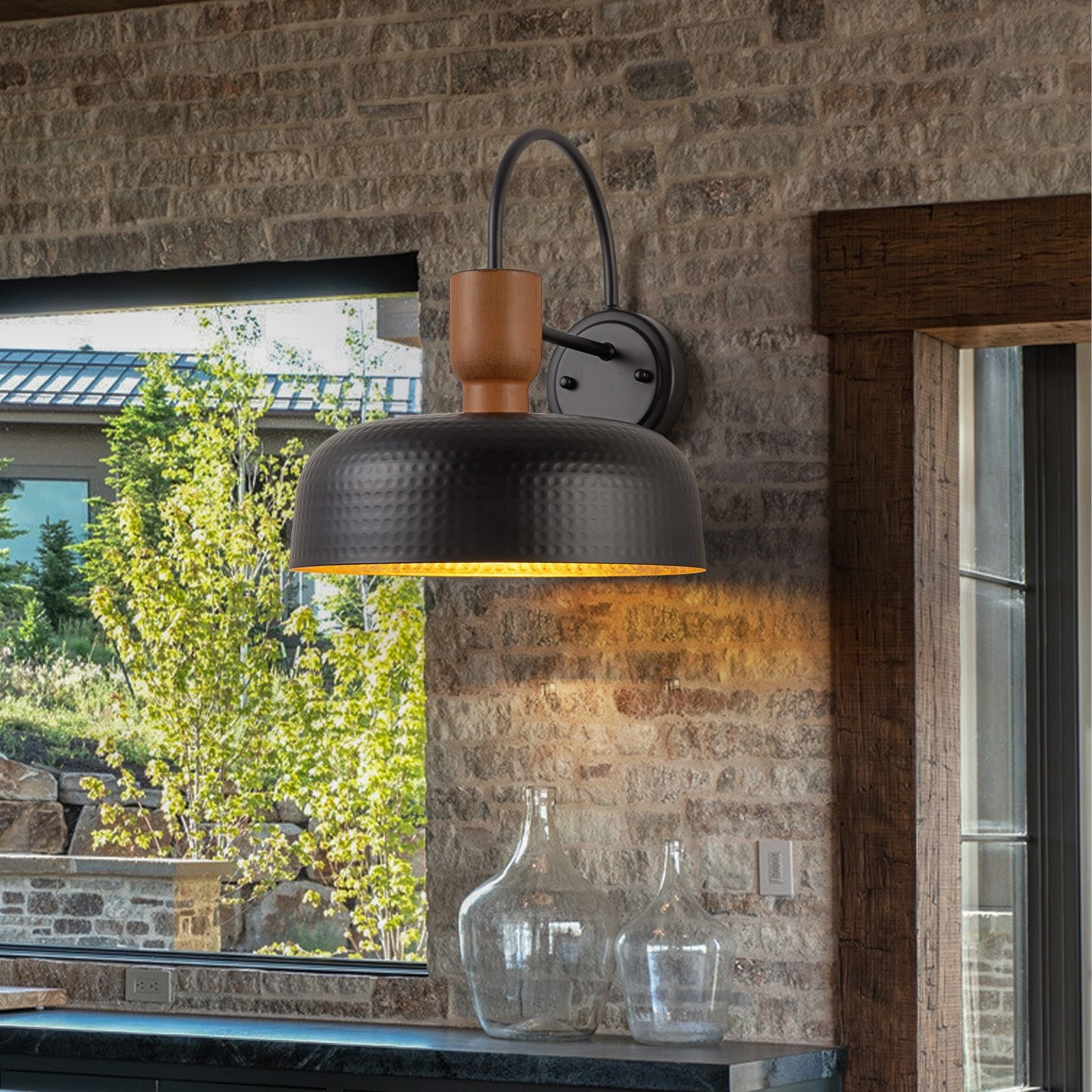 Farmhouse 1-Light Wall Sconce Barn Outdoor Light with Hammered Shade - 12.2-in W x 10.2-in H