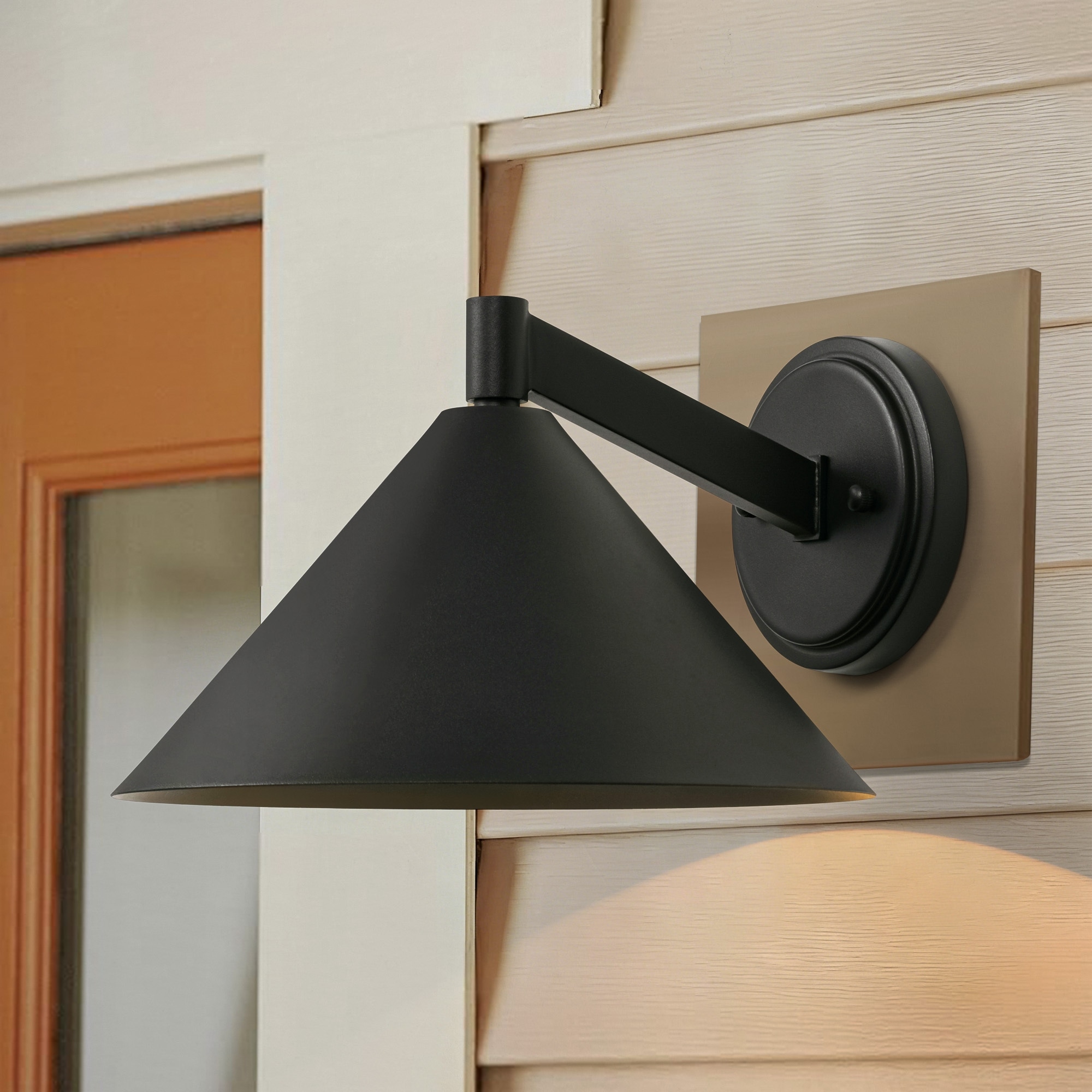 10.6" Modern Industrial 1-Light Satin Black Finish Outdoor Wall Sconce with Cone Metal Shade for use in Porch,Garage