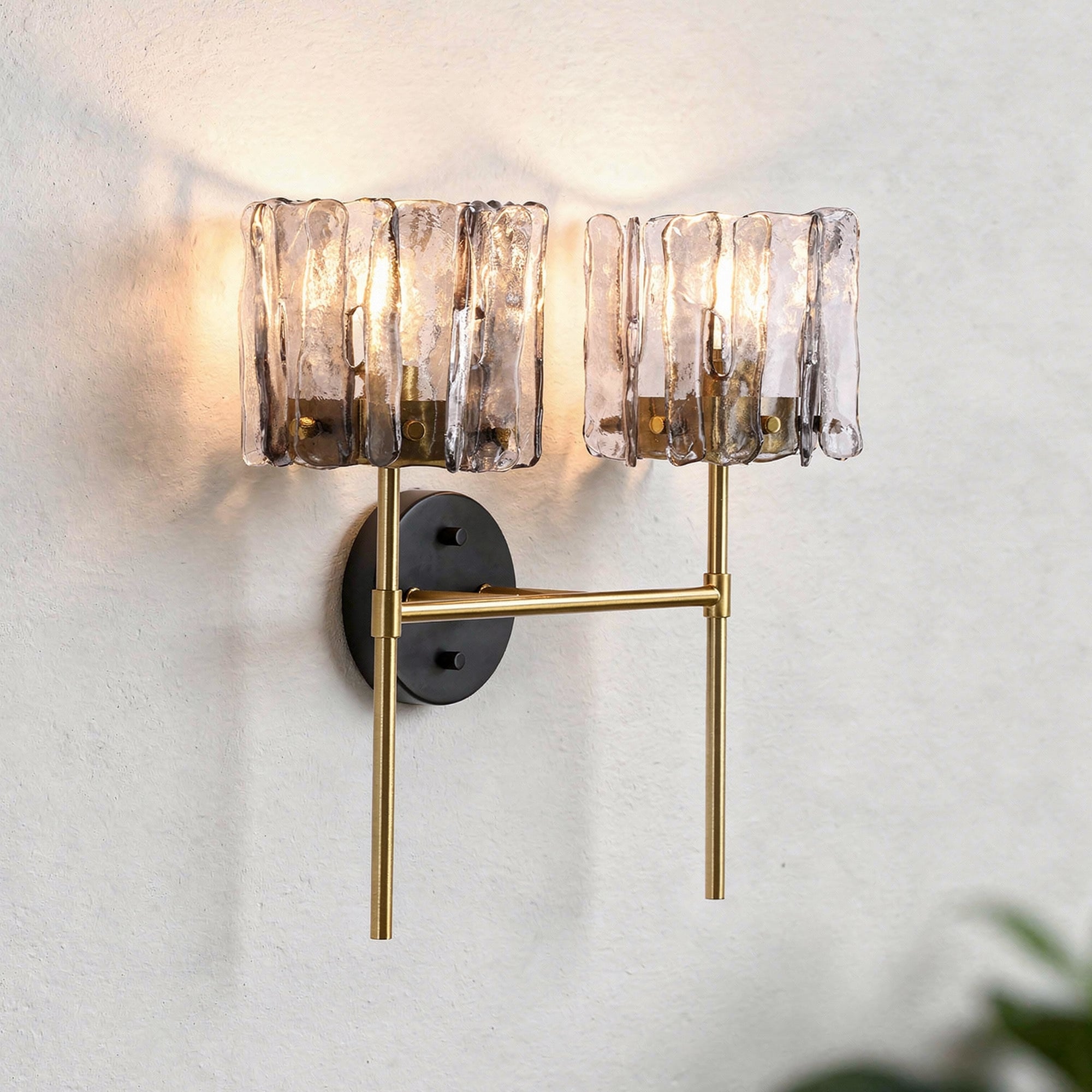 2-Light Modern Wall Sconce with Textured Glass Bathroom Vanity Light