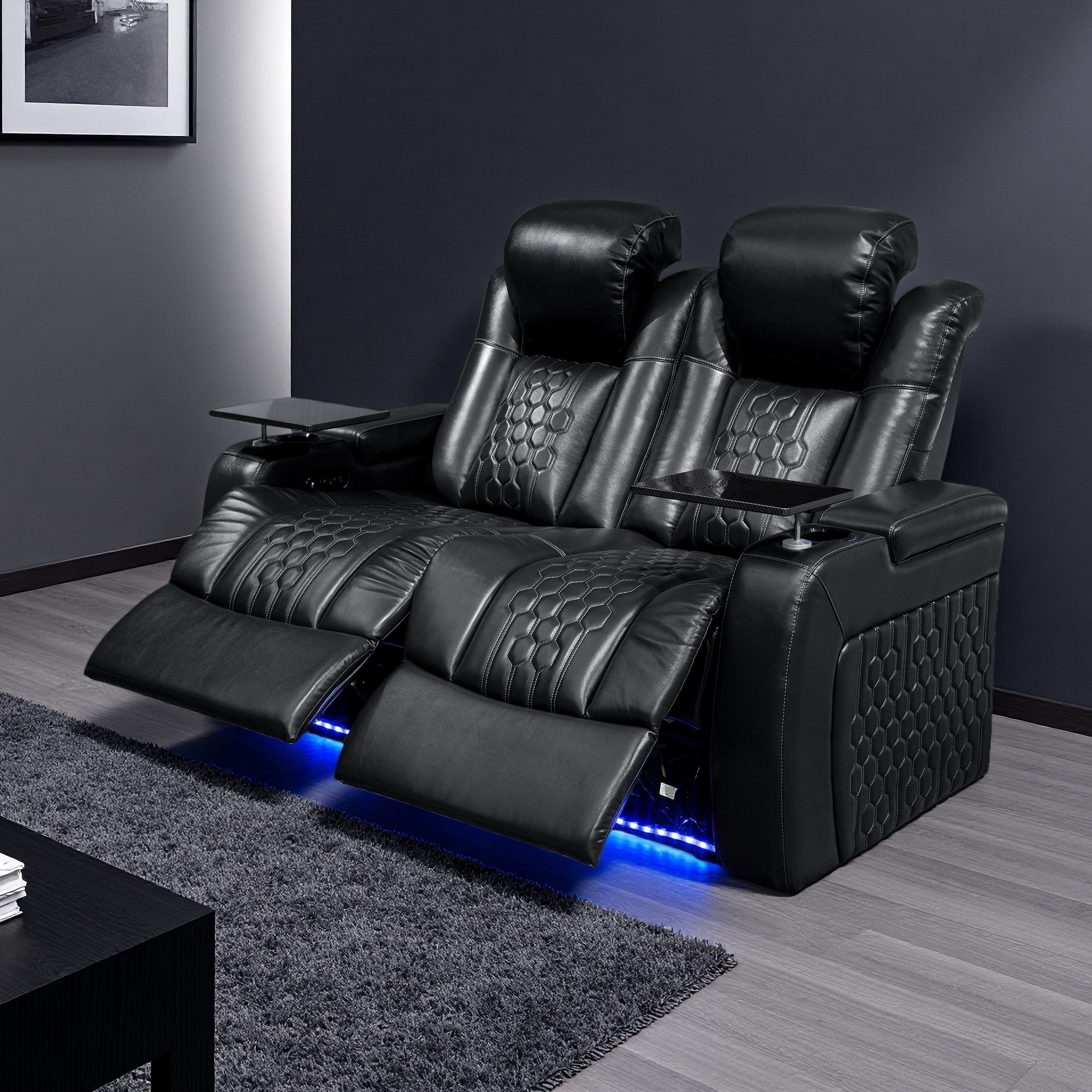 62.2" Top-Grain Nappa Leather Power Recliner Sectional Sofa with Smart Charging and RGB LED Lighting (2-Piece)
