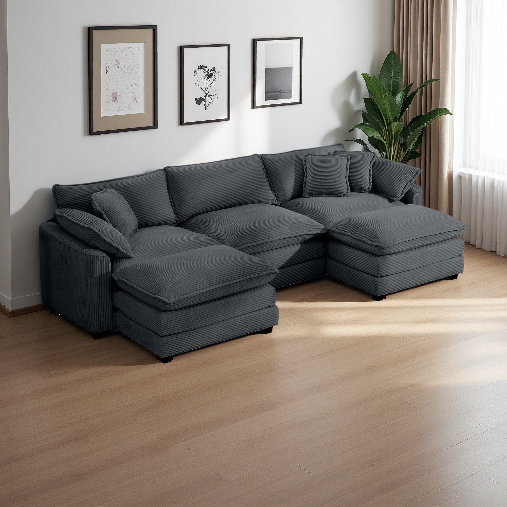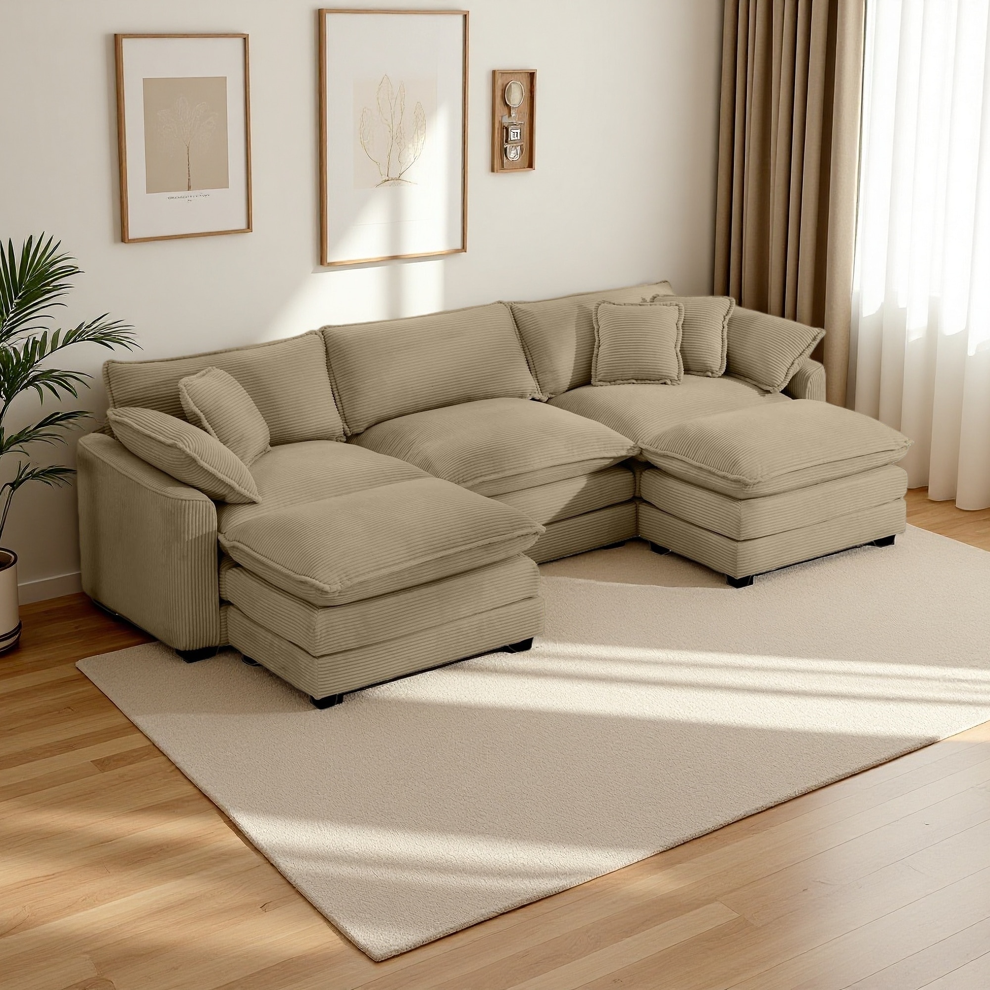 114.56" Corduroy U-Shaped Modular Sectional Sofa with Portable Ottoman and Deep Seat