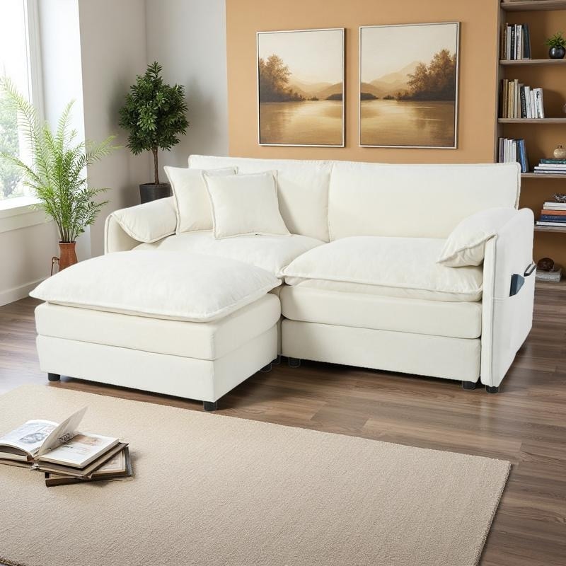 Kullavik Cloud Chenille L-Shaped Sofa, Modular Sectional Sofa with Ottoman, Throw Pillows and Double Layered Cushion