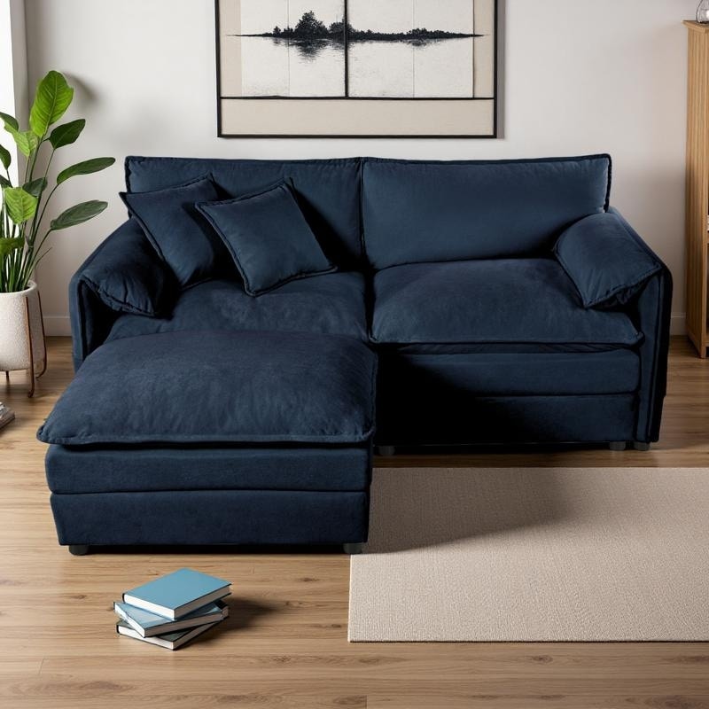 75.59" Chenille L-Shaped Modular Loveseat Sectional Sofa with Deep Seat and Ottoman
