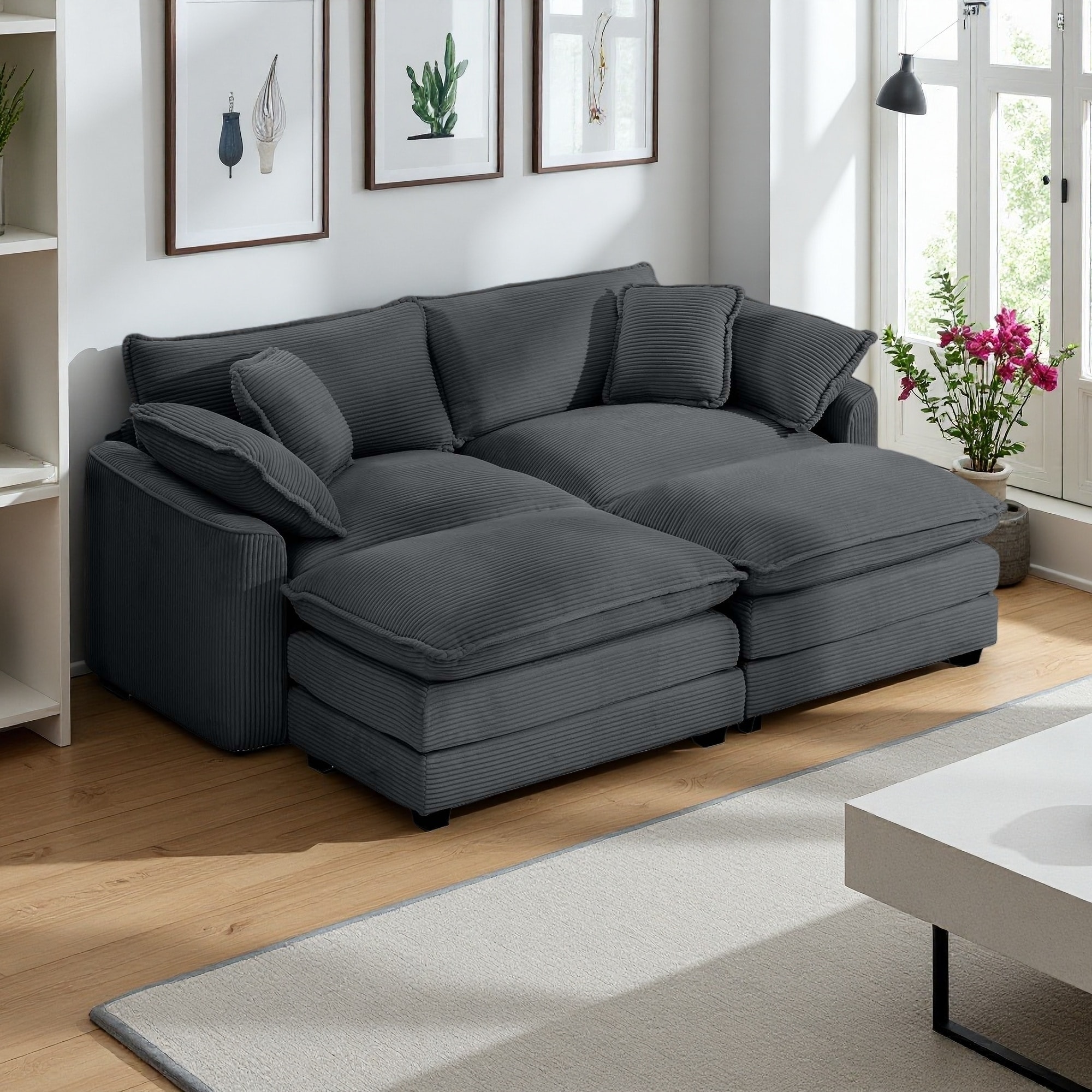 80.31" Corduroy Modular Sectional Sofa with 2 Footrests (2-Seater)