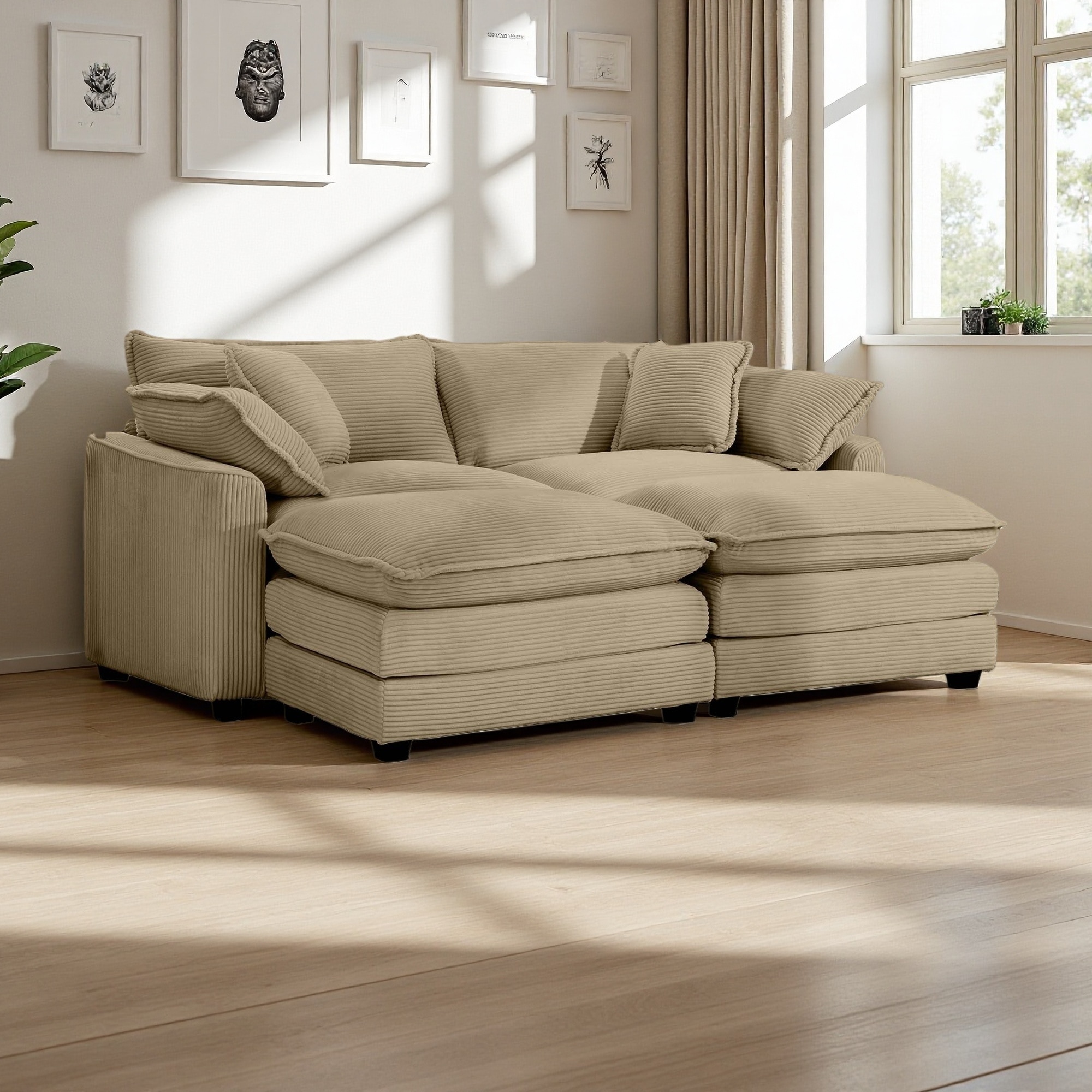 80.31" Corduroy Modular Sectional Sofa with 2 Footrests (2-Seater)