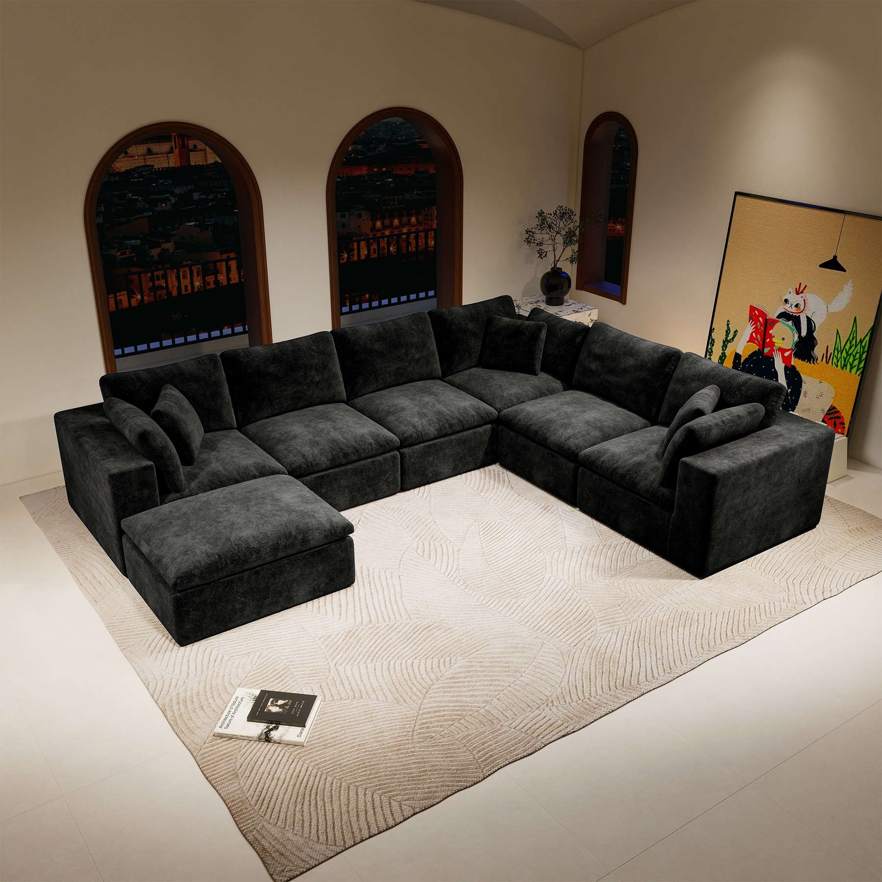 U-Shape Cloud Sectional Sofa with Ottoman, 135" Modern Upholstered Chaise Lounge Boneless Modular Sofa Compressed Floor Sofa