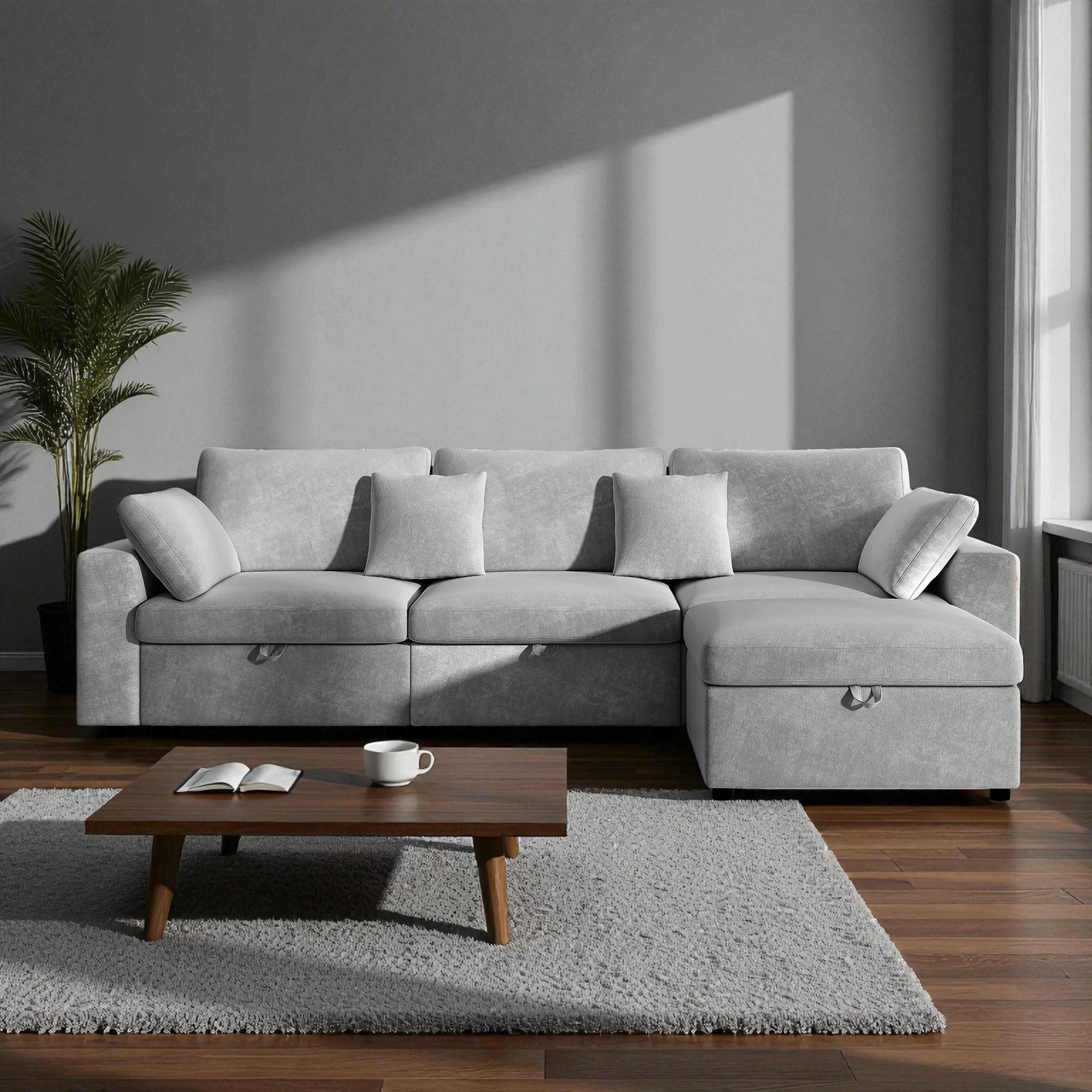 L-Shape 3 Deep Seat Modular Sofa Couch with 1 Movable Ottomans