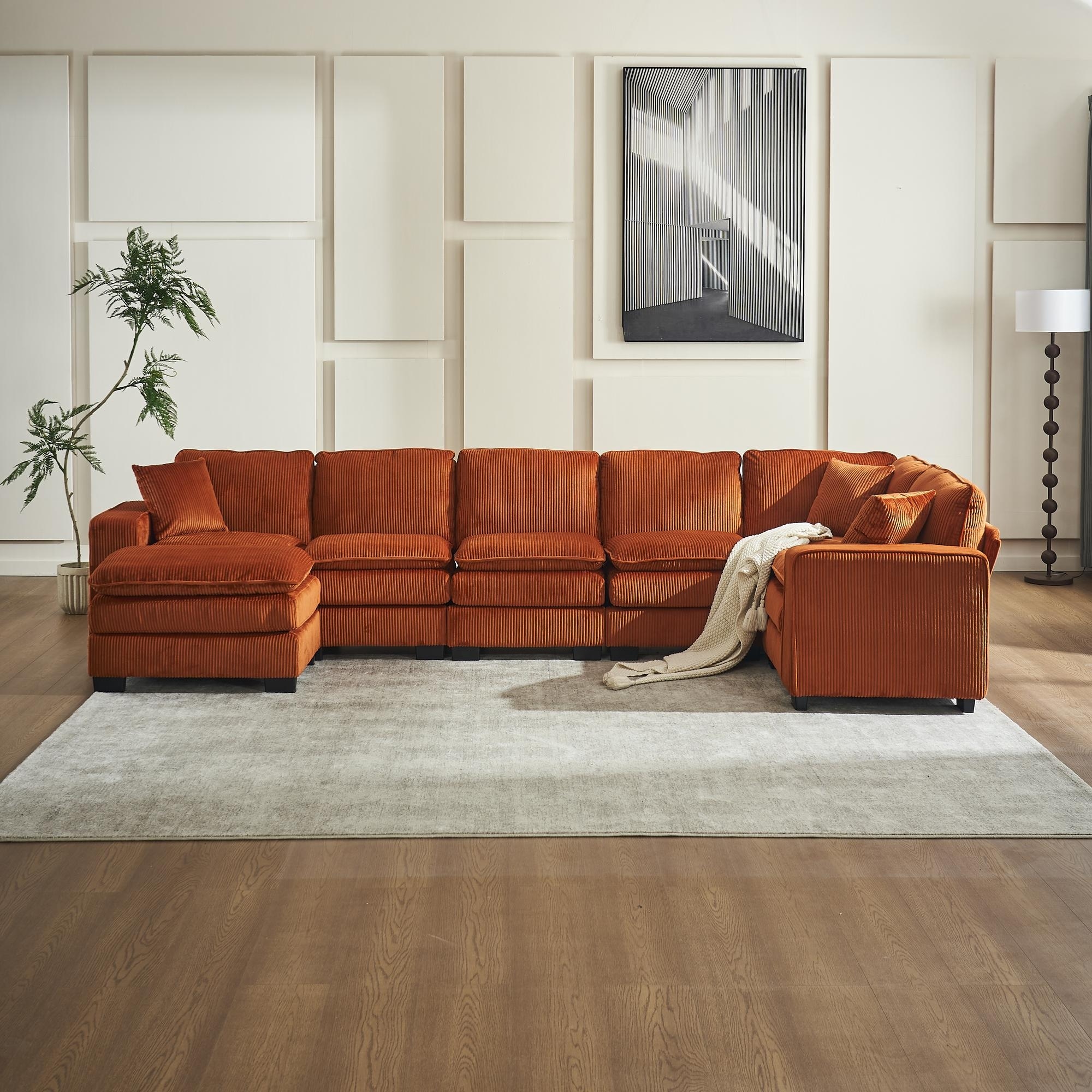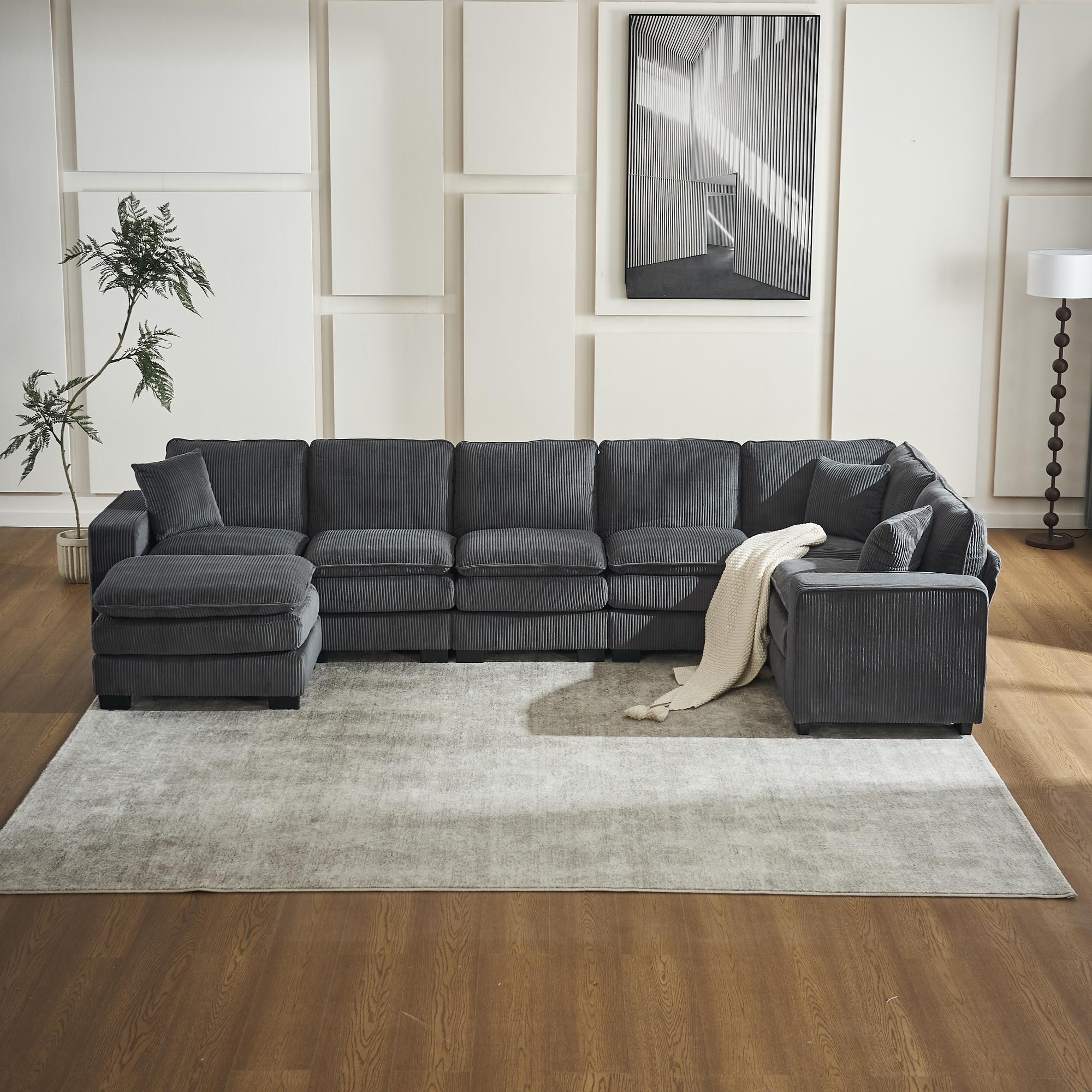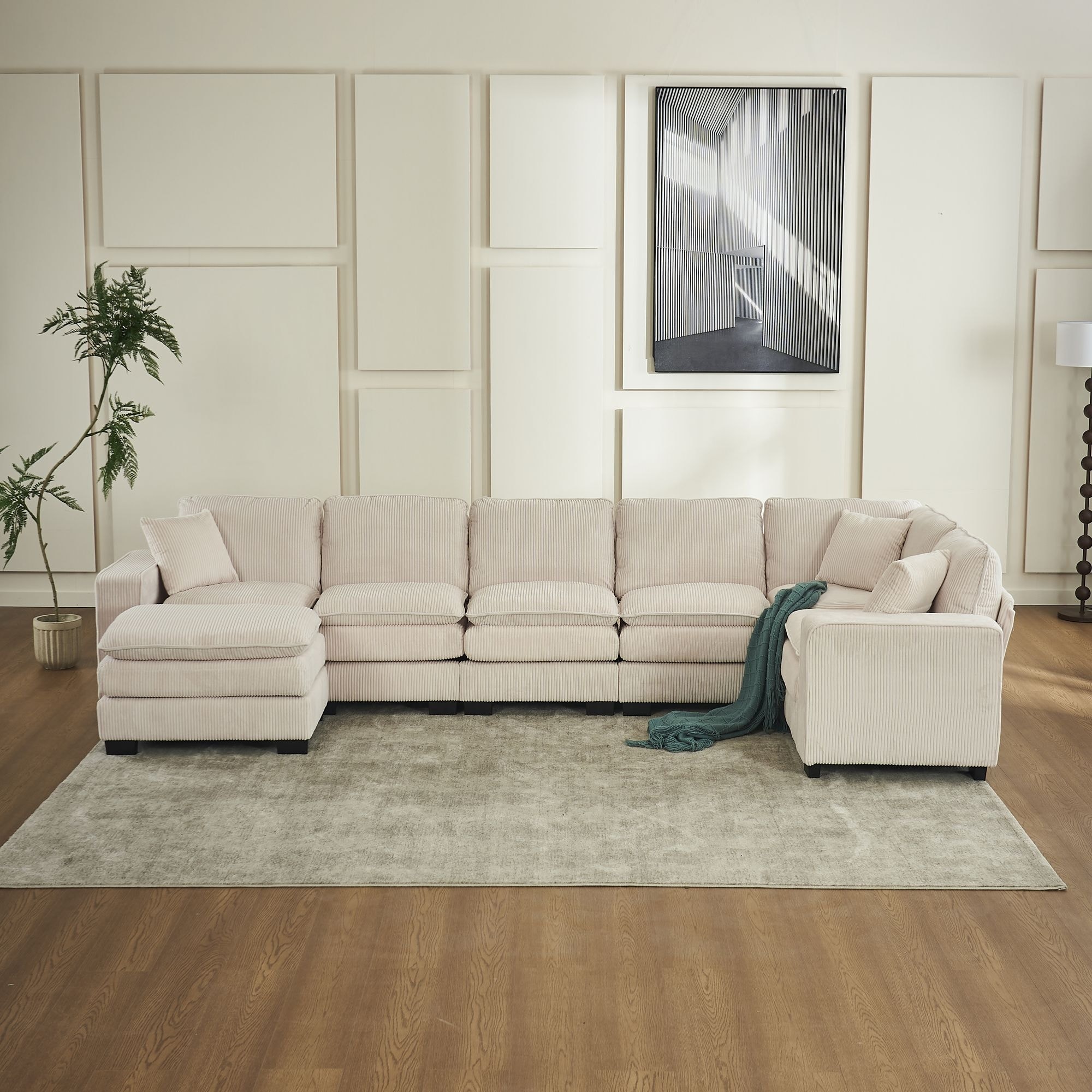 Modern U-Shaped 6-Seat Modular Sectional Sofa with Ottoman and Pillows