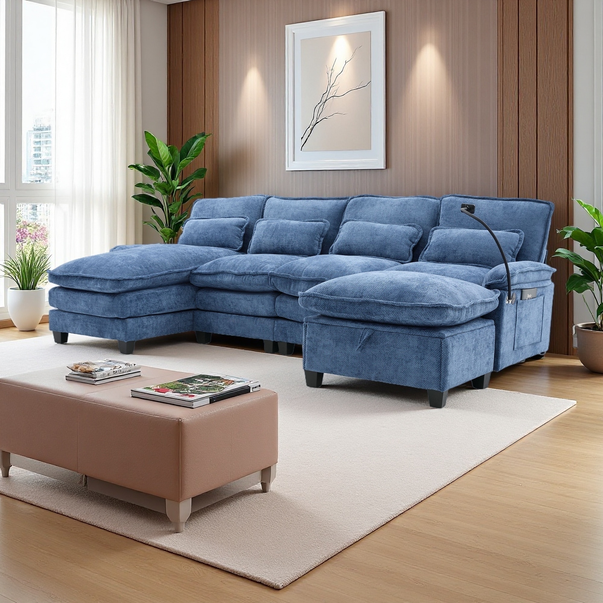 106.69" Chenille U-Shaped Sectional Sofa with Chaise Lounge and Storage Ottoman and USB/Type-C Charging