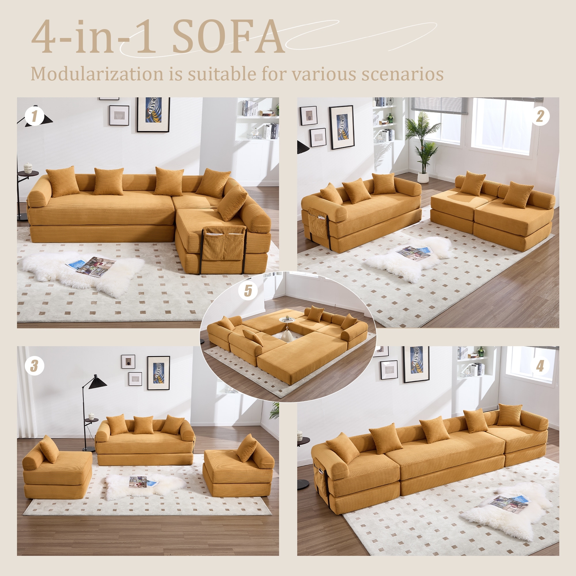 Convertible Floor Cloud Couch Bed, Free Combination Modular Sleeper Sofa, Corduroy Futon Couch Bed