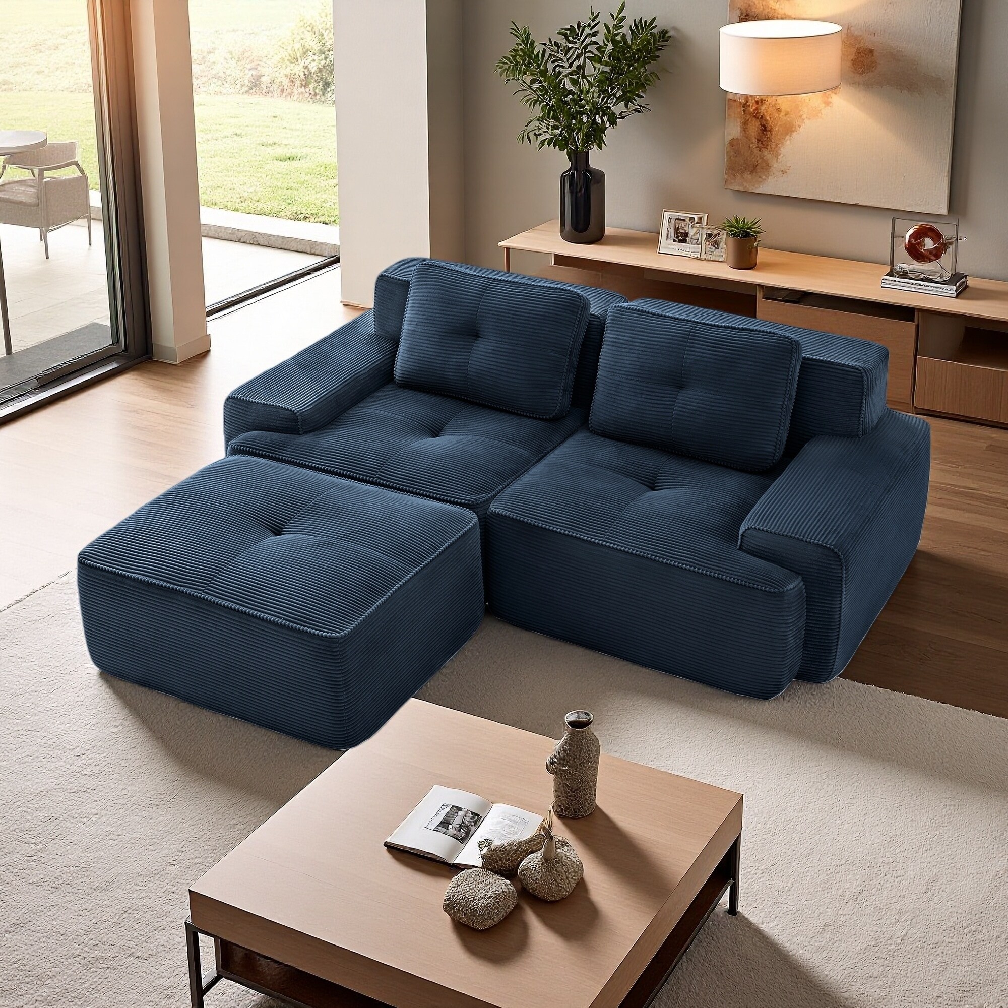 81.9" Corduroy L-Shaped Modular Sectional Sofa with Deep Seat & Ottoman