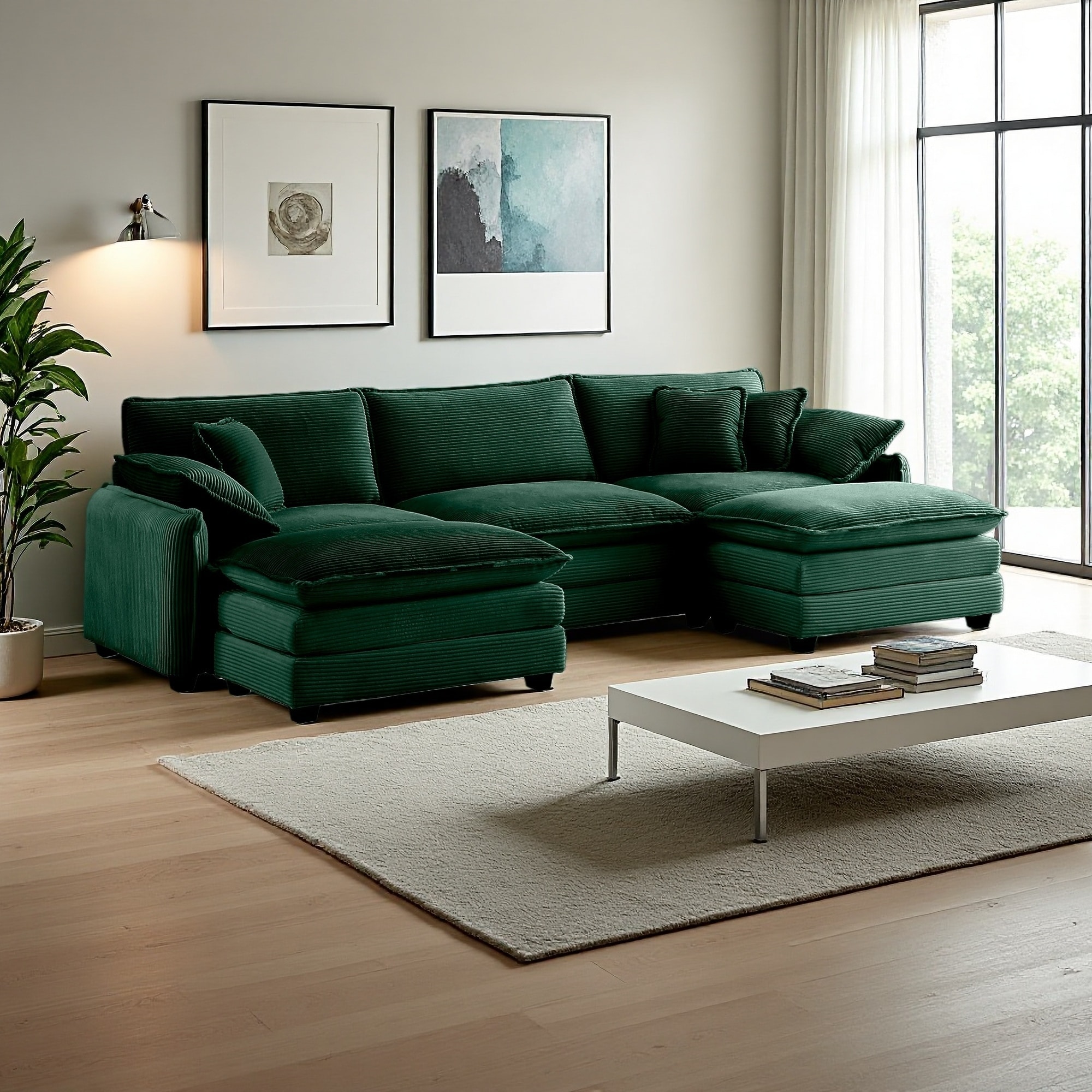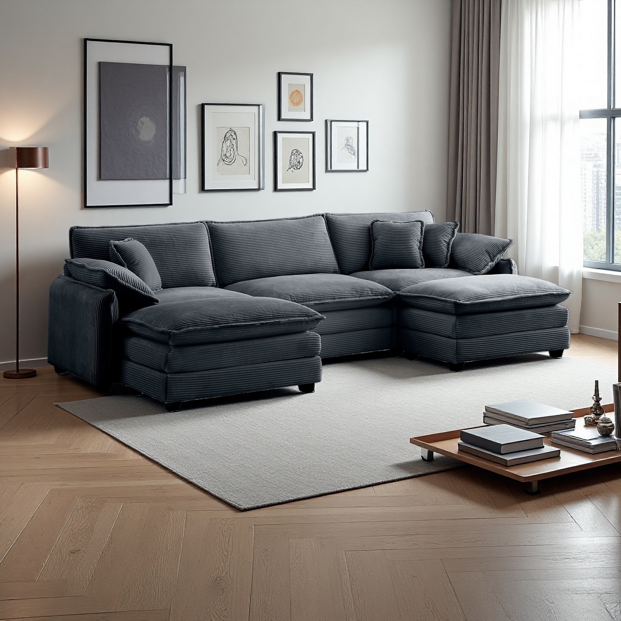 115.34" Corduroy Oversized U-Shaped Modular Sectional Sofa with 2 Convertible Ottomans (3-Seater)