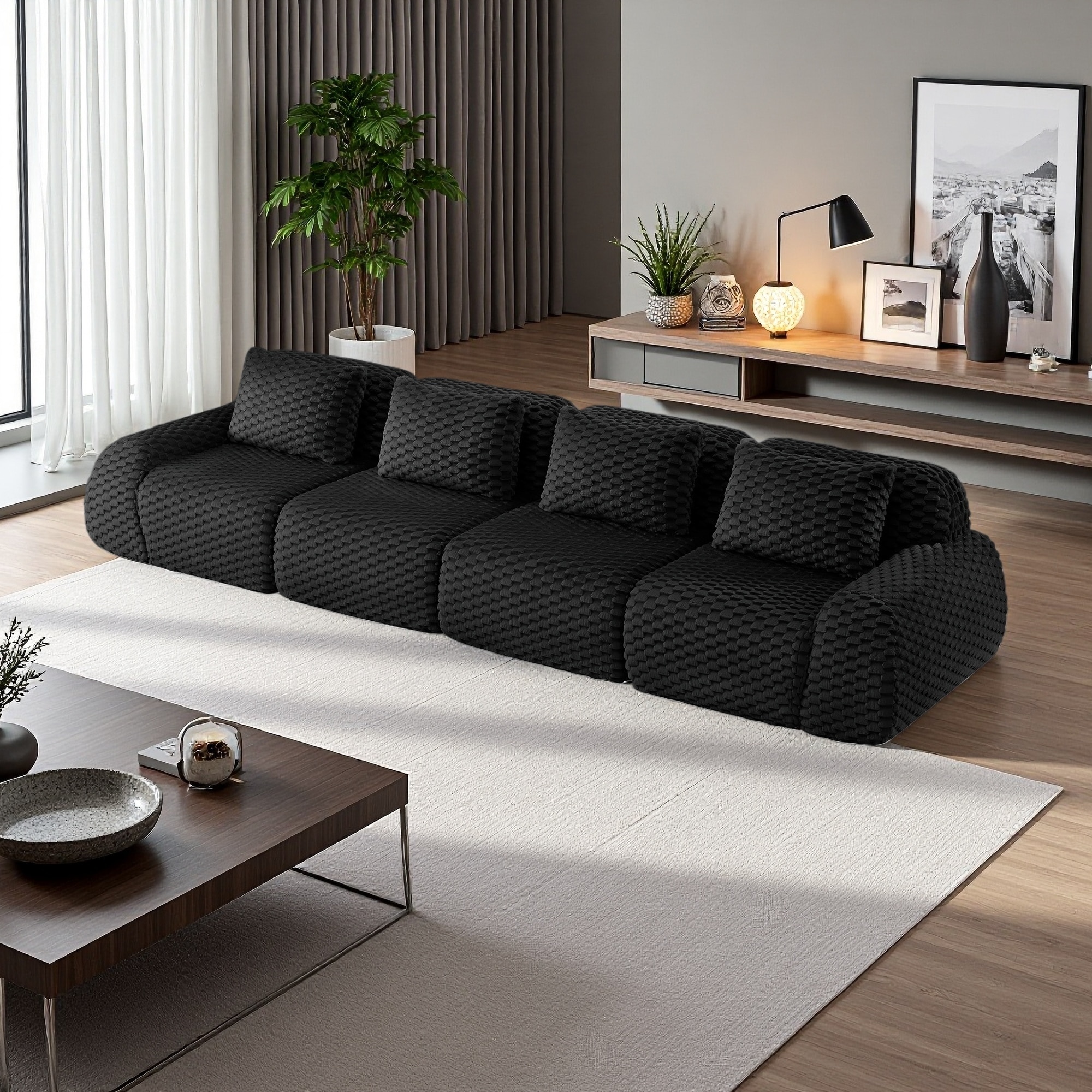 146.4" Flannelette Modular Sectional Sofa with Deep Seat and No Assembly Required
