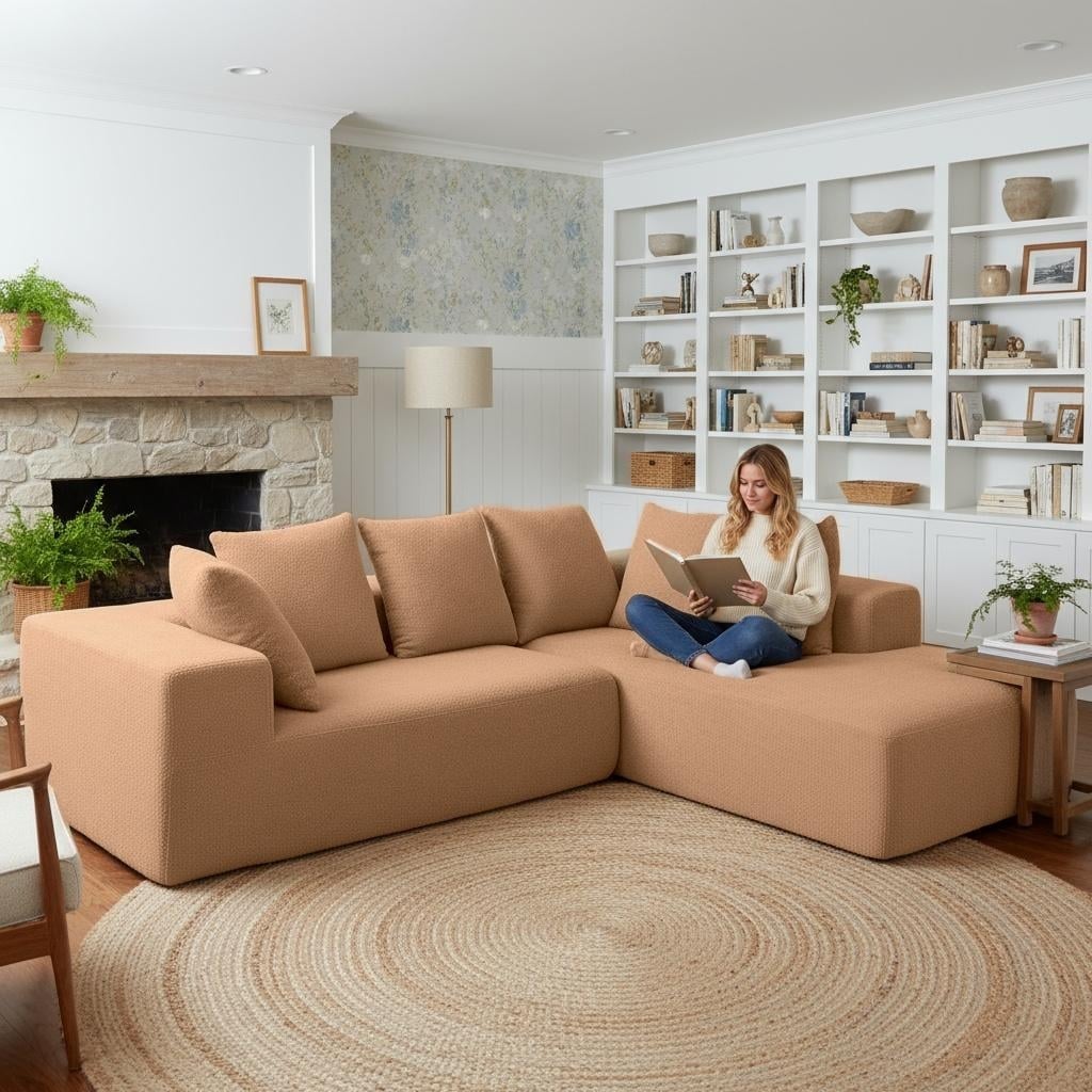 L-shaped Soft and Fluffy Plush Fabric,Modular Sectional Sofa Couches