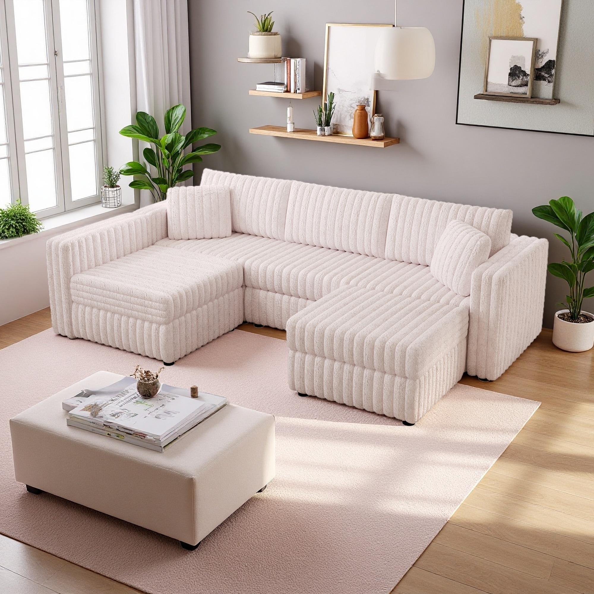 Modern Modular Large U-Shape Sectional Sofa with Reversible Chaise and Double Extra Ottomans for Living Room and Guest Room