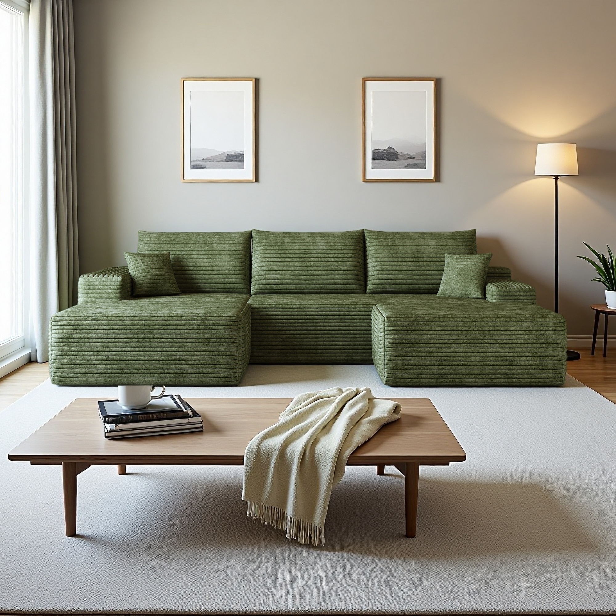 Modern Corduroy Upholstered Sofa, 4-seater, L-Shaped Sectional Sofa