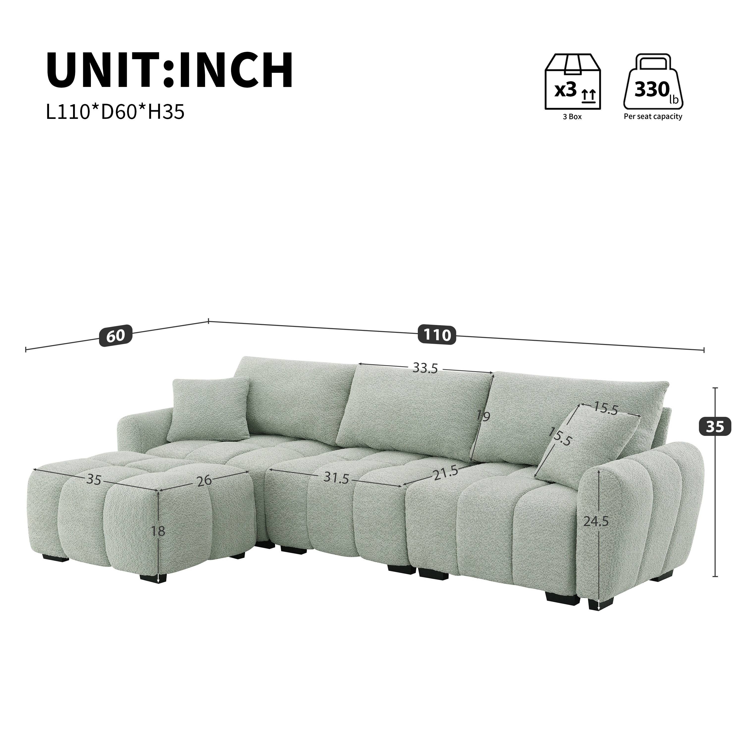 L-Shaped Sectional Sofa with Movable Ottoman, Boucle Fabric Couch with 2 Throw Pillows, Modular Upholstered 4 Seat Sofa