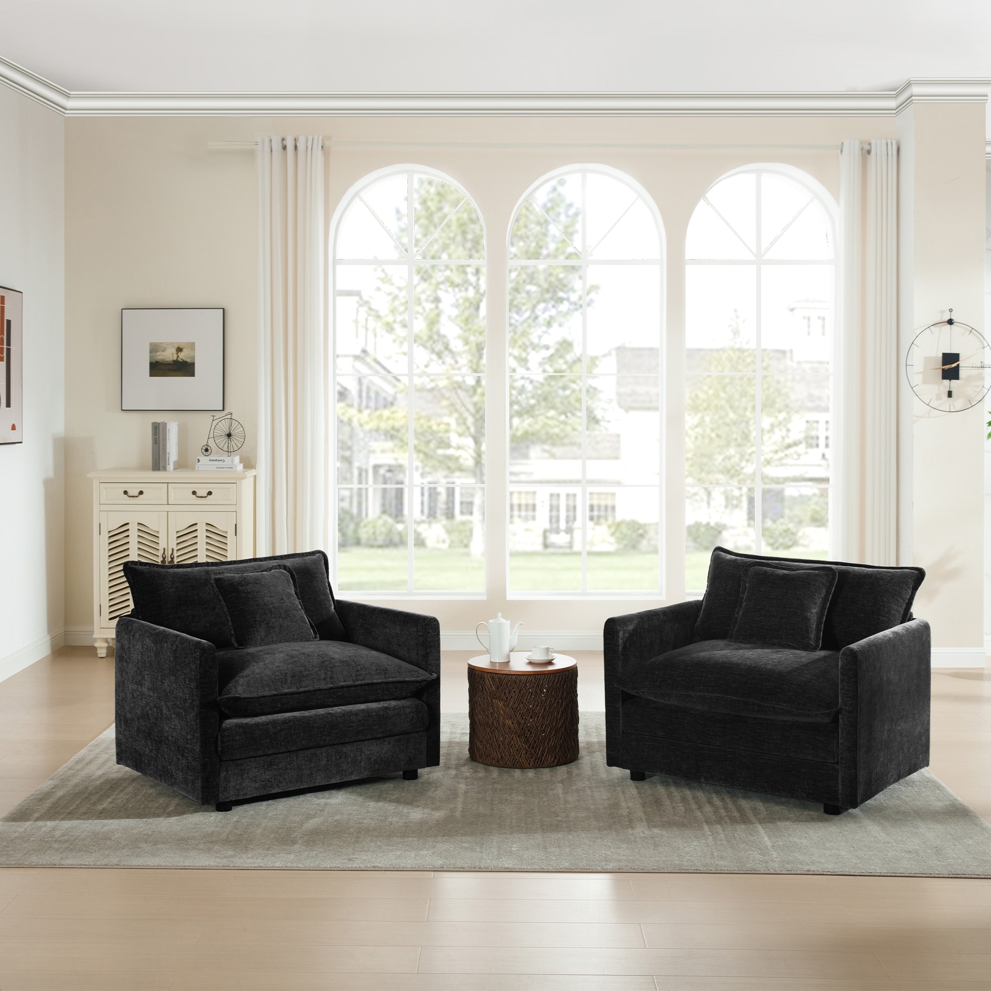 GDFStudio - Chenille 2-Seater Cloud Couch Sleeper Sofa with Round Bolster Armrests