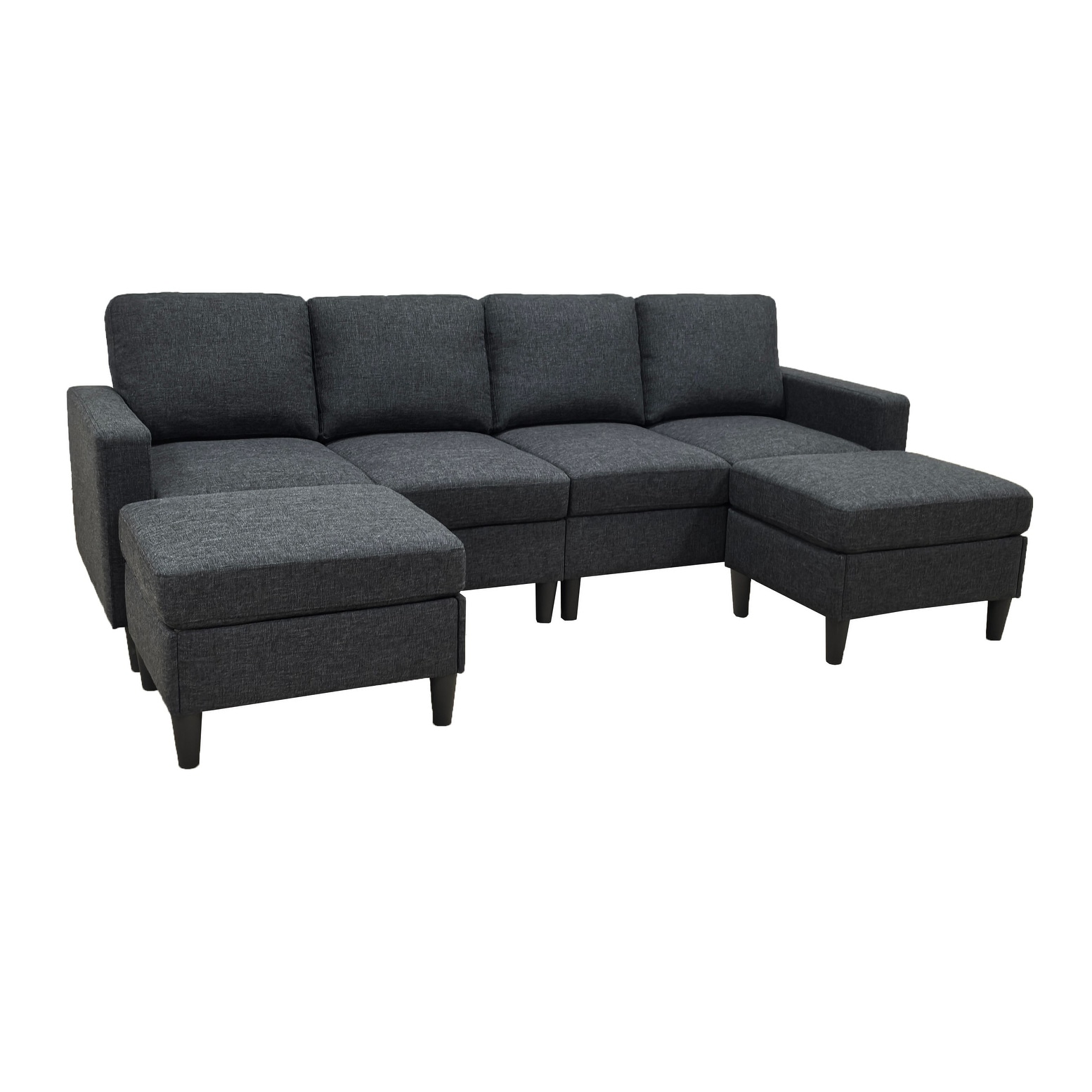 Linen Upholstered Modular Sectional with 2 Ottomans