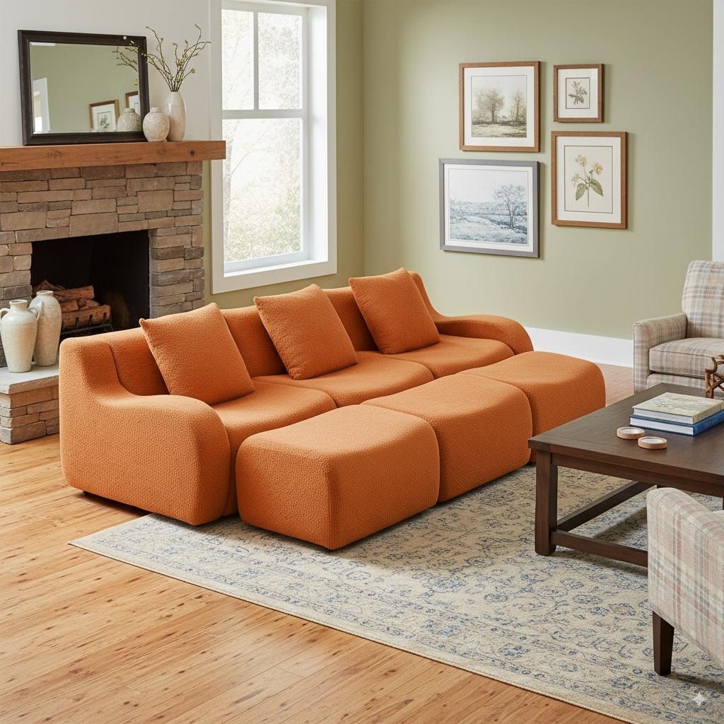 4 Piece Free Combination Modular Sofa, Oversized Tufted Sectional Sofa Couch Sleeper with 4 Pillows