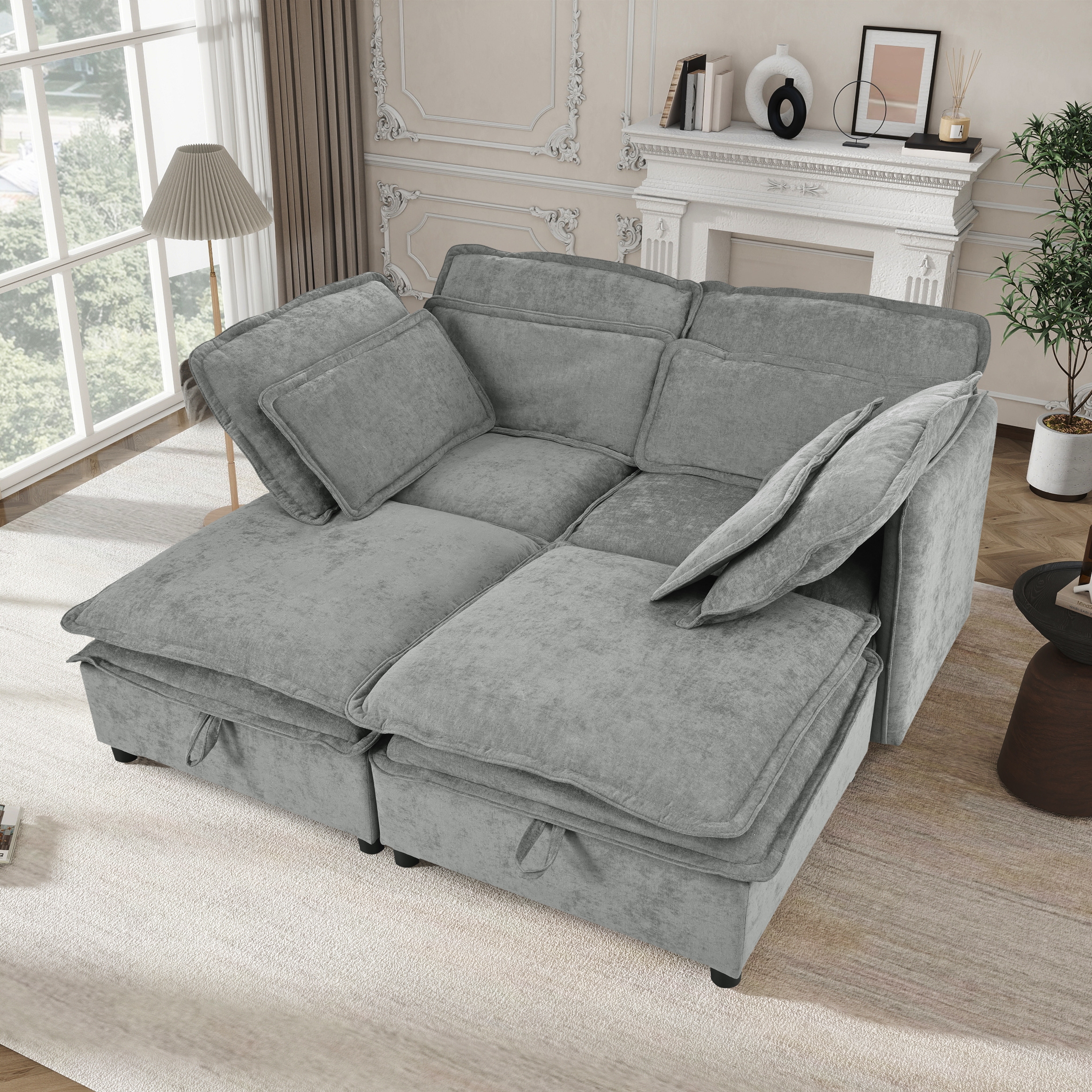 4-Seater Double-Layer Cushion Modular Sofa with Storage Function