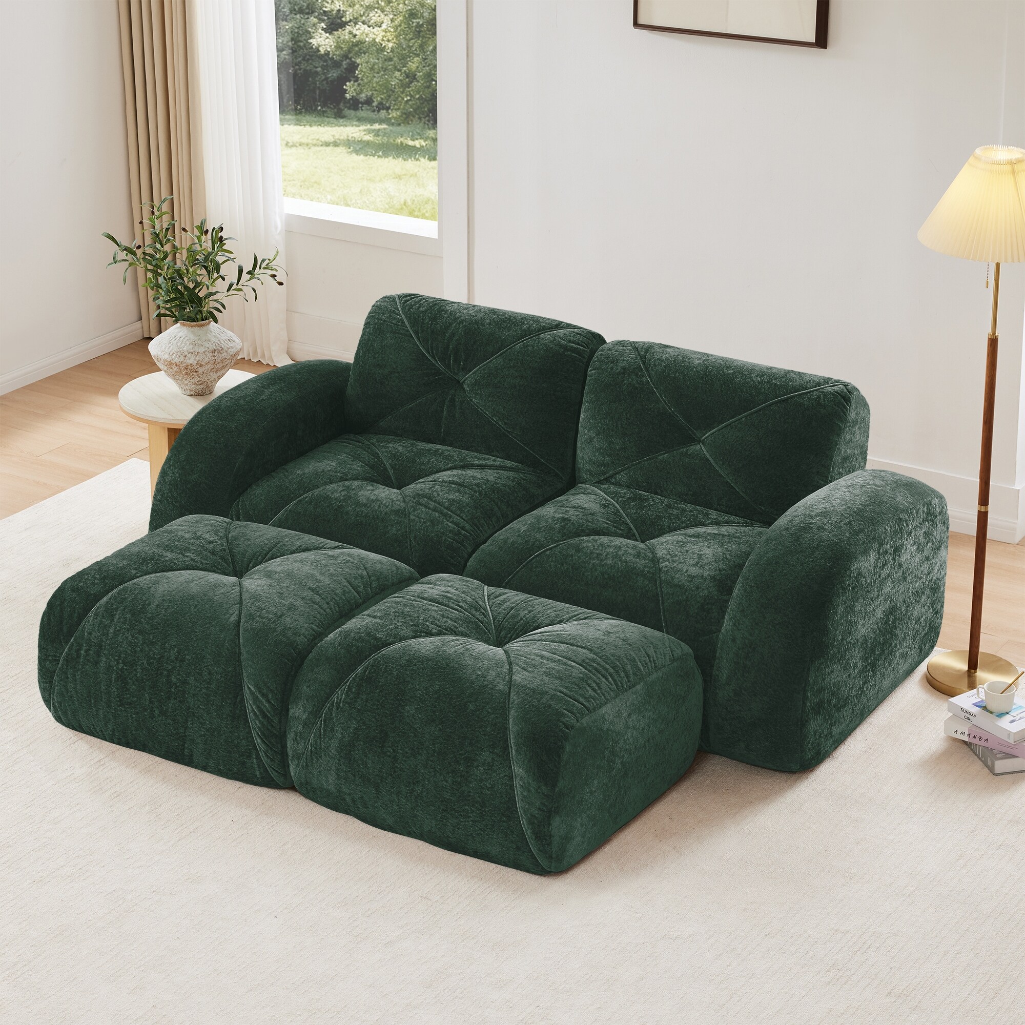 Velvet Tufted Loveseat Sofa Modular Couch, Boneless Deep Seat 2-Seater Couch, Available with/without Ottoman