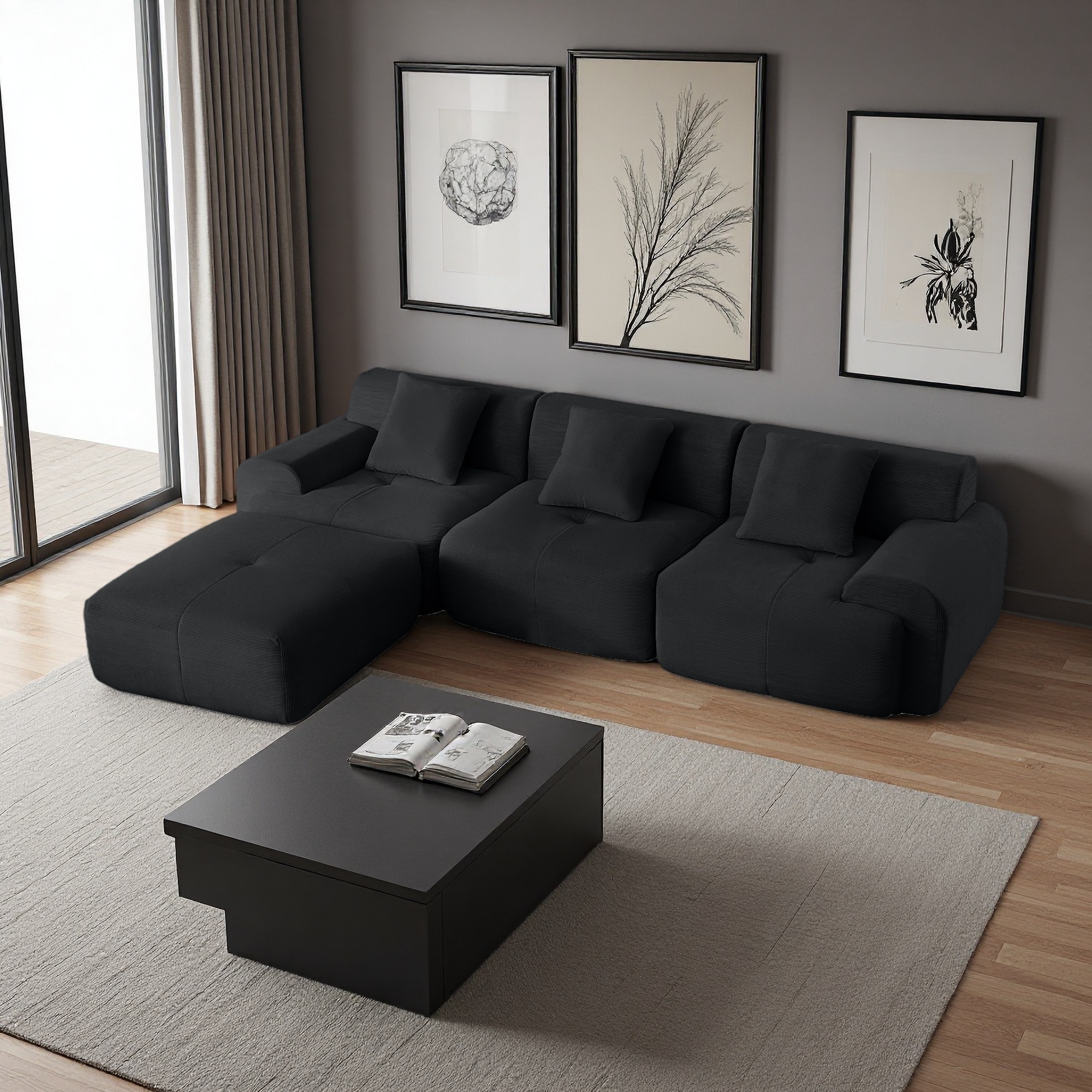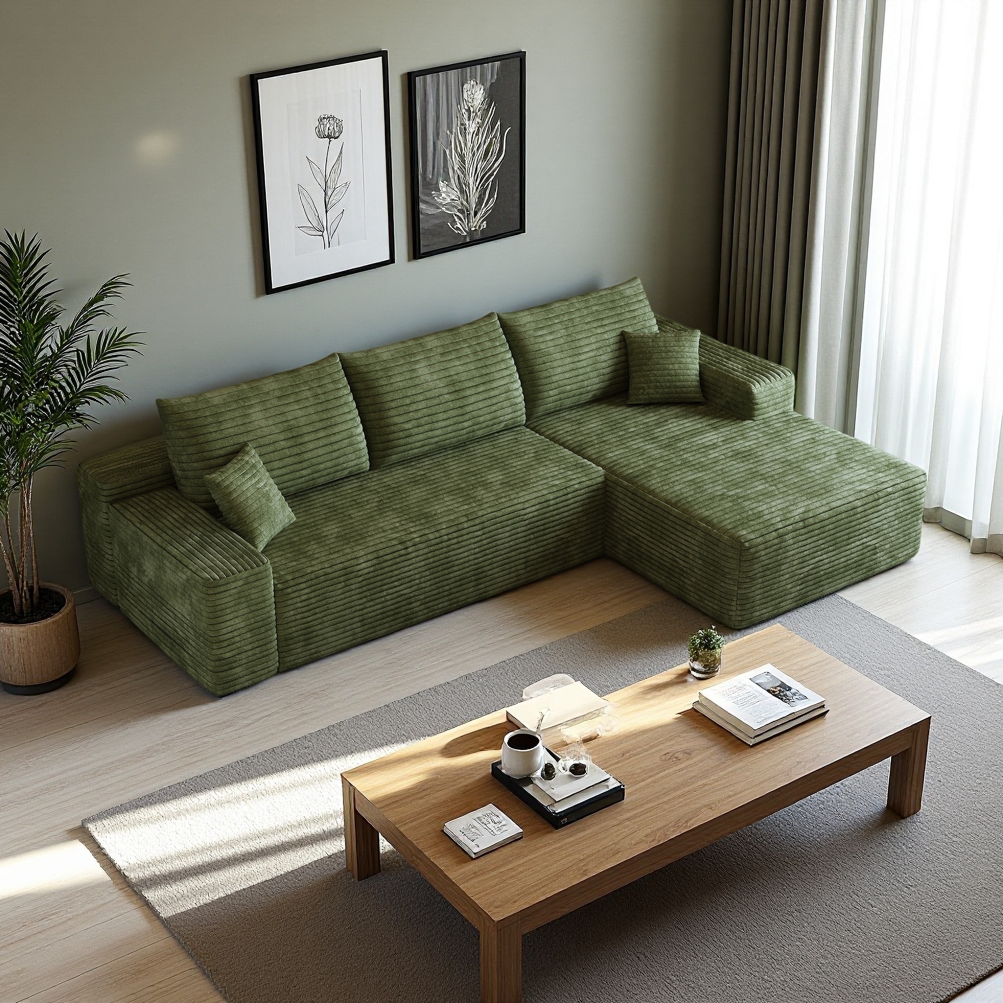 118.2" Corduroy Modular 4-Seat Sectional Sofa with Feather Cushions, No Assembly