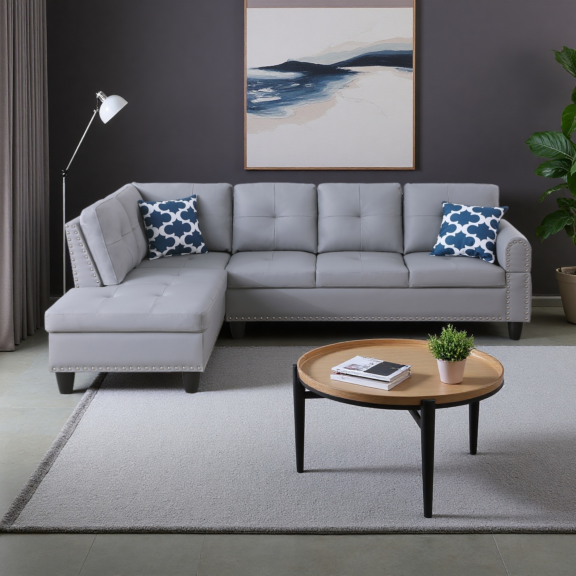 98" Faux Leather L-Shaped 3-Seat Sectional Sofa with Chaise Lounge