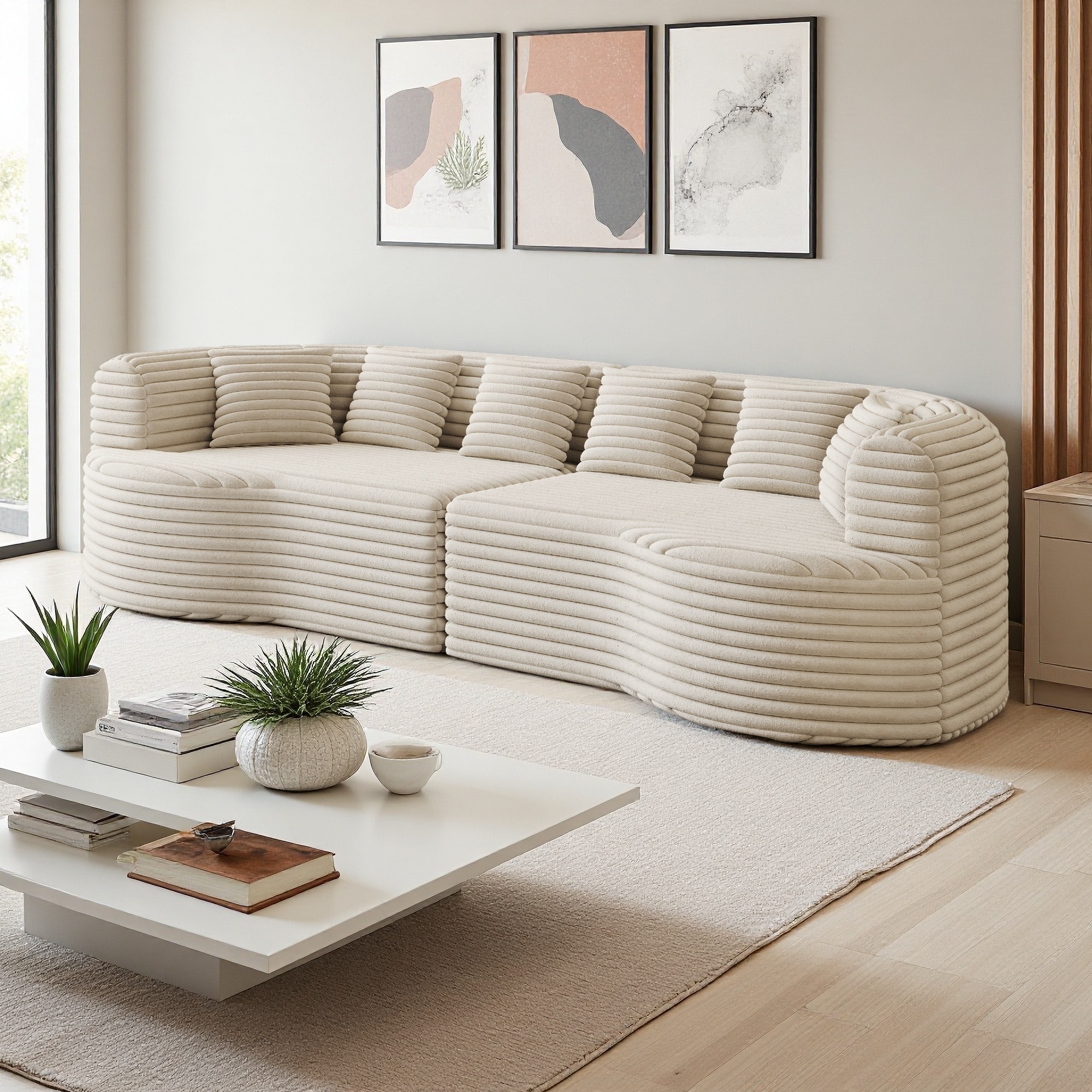 106.3" Corduroy Curved Sectional Sofa with 6 Pillows and Memory Foam (4-Seater)